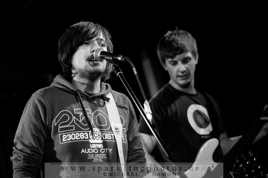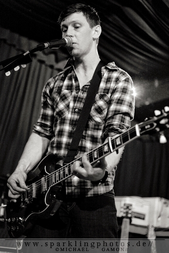 Dass das, wie in so vielen Fällen, vollkommen unverdient ist, merkte ich schnell. Belasco gehören in größere Clubs als das Blue Shell, keine Frage. Dabei meine ich natürlich nicht Stadien, wie die vielzitierte Referenz Muse nahelegen könnte. Diese Vergleiche waren im Vorfeld des Konzerts auch das, was mir (neben den beiden Vorgruppen mitten in der Woche) am meisten Sorgen bereitete. Musescher Bombast blieb aber glücklicherweise aus, beim Zuhören sortierte ich die mir unbekannten Songs in zwei andere Kategorien. Es gab nämlich die Tiger Lou und die James Lieder: wenn es schnell, laut und rockig wurde, erinnerten mich die Songs wegen ihrer Instrumentierung und Struktur an die Schweden um Rasmus Kellerman, die Balladen dagegen an meine alten Lieblinge James. Erstaunlicherweise klang Tim bei diesen Stücken Tim Booth von James wirklich sehr ähnlich; ich mochte das.