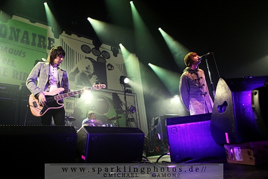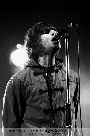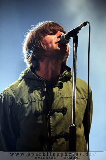 mit dem tollen House of love Song) und „Millionaire“ vervollständigten die erste Viertelstunde. Das ging gut los, und mein erster Eindruck ist: Beady Eye kommen energiereicher rüber als Oasis. Der Sound ist wuchtiger, die Lichtshow „aggressiver“ – soweit Lichtshows das sein können.Ohne einen zweiten Frontmann konzentriert sich das Augenmerk allein auf Liam Gallagher. Und der zeigt wieder, dass er der derzeit charismatischste Frontmann der Welt ist. Man möge von ihm halten, was man wolle, aber auf der Bühne ist seine Präsenz unerreicht. Jede Bewegung, jedes nach den Songs in Mikrofon genuschelte „a nice one“ strotzt nur so vor Arroganz und Coolness. Großartig!