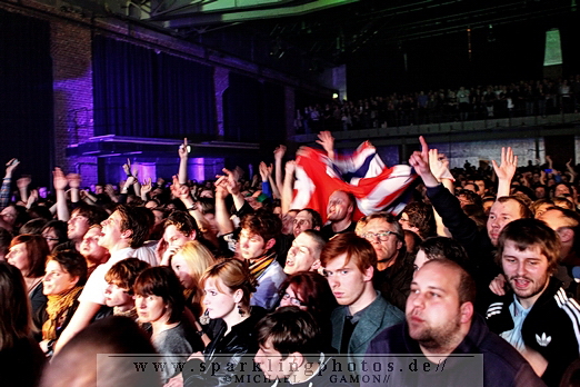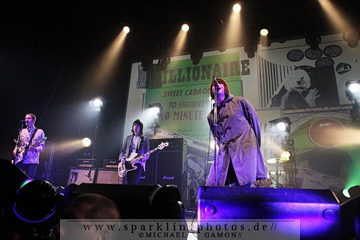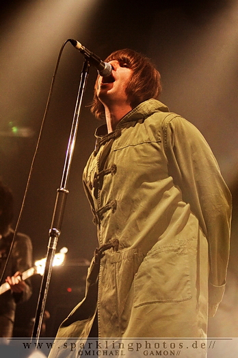 Heißt die dazugehörige Band allerdings Beady Eye, und kennt man ihre Vorgeschichte, so ist es nicht wirklich überraschend, dass 51:34 Minuten „Different gear, still speeding“ reichen, um das Kölner E-Werk auszuverkaufen und eine Begeisterung zu entfachen, die zeigt, dass im Britpop im Allgemeinen und bei den Gallaghers im Speziellen Gesetzmäßigkeiten wenig gelten. Ob der überschwängliche Enthusiasmus gerechtfertig ist oder nicht, lass ich dahingestellt sein. Objektiv betrachtet muss man dies sicherlich verneinen, mit der Fanbrille auf der Nase ist sie allerdings sehr gerechtfertigt.Nie kam man Liam Gallagher näher als an diesem Abend (das Oasis Gloria Radiokonzert von einigen Jahren mal außer Acht gelassen), spielte doch die musikalisch logische Oasis-Nachgeburt oder – wie ich es in letzter Zeit oft im Radio gehört habe – Oasis ohne Noel (was für ein Unsinn) im relativ überschaubaren E-Werk. Da reichte die Enge sogar zum Abklatschen mit den ersten Reihen. Was für eine nie gesehen Fannähe!