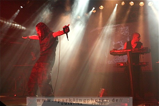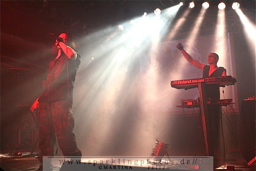 Das nächste Duo kommt aus dem sonnigen Süden in den Ruhrpott. Die Musik von Culture Kultür ist im Anschluss der letzten Stunde viel weicher. Ab jetzt wird das Matrix mit tanzfreundlichem Synthpop der Spanier beschallt. Ein Instrument auf der Bühne reicht für den elektronischen Blubber aus. Der Rest ist Konserve. Die powervollen Songs treiben das Publikum auf sanfte Weise weiter an. Frontmann Salve Maine arbeitet nur mit seiner Stimme und macht den Zuschauern das Tanzen auf der großen Bühne schmackhaft vor. Zwischen Songs wie „Distress Call“ oder „Fading Away“ muss nicht viel geredet werden, denn auch ohne große Ansagen funktionieren sie um eine perfekte Stimmung zu verbreiten. Mit der weiblichen Soundverantwortlichen- Synthiefrau bekommen die überwiegend männlichen Zuschauer anstatt nur was auf die Ohren auch genügend Input für die Augen mitgeliefert. Wer an diesem Abend außerdem noch auf den Sound von Covenant und Namnambulu steht, kann mit allen Sinnen genießen. Denn aus vielen dieser kleinen Einzelteile setzen sich die Stücke von Culture Kultür zusammen. Kein Wunder also das die live Zeit vor der E.O.D. Party wie im Rausch vergeht.