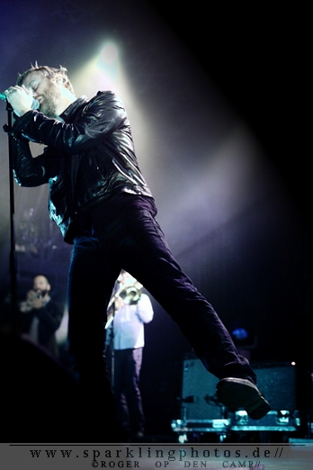 Sänger Matt Berninger behielt während des gesamten Konzerts seine Lederjacke an, was angesichts dieses Publikums sehr warm gewesen sein muss. Neben Berninger kann die Band Besetzungstechnisch immerhin mit zwei Geschwisterpaaren aufwarten: Aaron (Gitarre, Bass, Piano) und Bryce Dessner (Gitarre), sowie Scott (Bass, Gitarre) und Bryan Devendorf (Schlagzeug). Außerdem standen noch ein Trompeter und ein Posaunist auf der Bühne. Als jemand aus dem Publikum Unterwäsche auf die Stage wirft, gibt sich Frontmann Matt betont keck, lächelt schelmisch und sagt, dass ihn dies „etwas nervös“ machen würde. Das Konzert war toll, ich war sehr positiv überrascht von den gespielten Liedern und ihre Abwechslung. Ich wusste vorher nicht genau, was zu erwarten wäre, aber ich hörte neben starken Songs auch einige sehr gute Lyrics. Vor allem der Abschluss war sehr bewegend, als die komplette Band gemeinsam die akustische Version von „Vanderlyle Crybaby Geeks“ sang. Es war eine Freude The National zwei Stunden lang spielen zu sehen und in dieser Zeit gab es nicht einen einzigen Moment der Langweile. Eine großartige Show in einer schönen Location und mit stimmigem Licht und Sound. Ich war neugierig und ich wurde in keinerlei Hinsicht enttäuscht!
