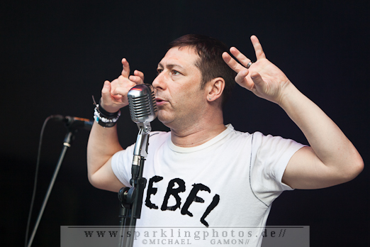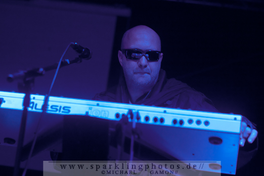 Nun konnte es auf der großen Bühne endlich mit einem richtigen Urgestein der Szene – Psyche – weitergehen. Seit beinahe 30 Jahren ist das ursprünglich von Darrin Huss und seinem Bruder Stephen Huss gegründete EBM-/Synthpop- Projekt immer wieder verantwortlich für den einen oder anderen musikalischen Kracher gewesen. Und auch wenn es einige Umstrukturierungen in der Band gab und Darrin mittlerweile ohne seinen erkrankten Bruder, aber dafür mit einigen begabten Live- Keyboardern auf der Bühne steht, ist und bleibt Psyche nach wie vor unverwechselbar gut. Die Besucher strömten aus allen Ecken des heimeligen Kulturparks und versammelten sich dicht vor der Bühne. Wie eine Erlösung wirkte dann der erste Song „Uncivilized“, den ein energiereicher Darrin Huss seinen Fans darbot. Und bereits ab der ersten Sekunde hatte er die Menge gepackt und es ließ einen bis zum Schluss einfach nicht mehr los. Kracher wie „Sanctuary“, „Unveiling The Secret” oder das Joy Division Cover „Disorder“ schlugen ein wie eine Bombe und die Menge feierte, was das Zeug hielt. Die Stimmung war wirklich sagenhaft und das Warten hatte sich allemal gelohnt!