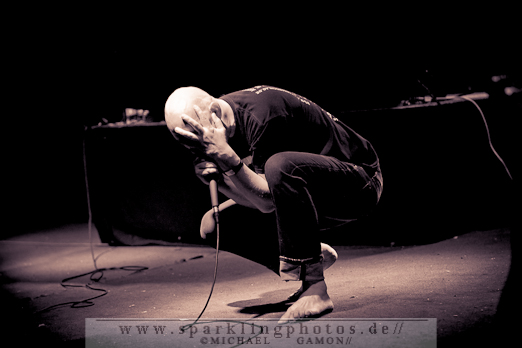 Mit „Shadowboy“ eröffneten die beiden ihr Set; im Hintergrund zeigte ein Bildschirm verschiedene Menschen, die dieses Wort einfach nur nachsprachen, was etwas verwirrend und bedrängend wirkte, aber eben auf die typische Klangstabil- Art. Und nun folgte wirklich ein Kracher dem anderen und das Publikum war nicht mehr zu halten, als Boris sich bei Songs wie „Math & Emotion“, „Twisted Words“ oder „You May Start“ gestisch und mimisch verausgabte. Es war wirklich wieder ein Erlebnis, die beiden auf der Bühne performen zu sehen. Klangstabil lieferten – wie gewohnt – eine tolle Show ab, der auch eine zwischenzeitige kleine Technikpanne bei „Love Has Too Much Audience“ keinen Abbruch tat.
