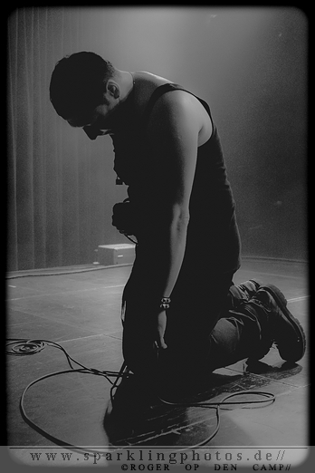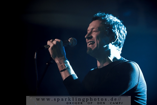 Vorstellen muss man Dirk Ivens und Eric van Wonterghem aka Absolute Body Control wohl nicht mehr, was natürlich ganz besonders in ihrer Heimat Belgien gilt. Wir sehen nun einen äußerst wandlungsfähigen Künstler der über viele Jahre Bünenerfahrung verfügt und uns stets mit tollen Projekten wie The Klinik , Dive, Sonar oder eben Absolute Body Control unterhält. Seit ihren Anfangstagen 1979 haben ABC eine Menge Konzerte abgeliefert, doch beim Soundcheck guckt Dirk Ivens zunächst etwas irritiert, denn der Sound will noch nicht so recht passen, was sich aber nach einer Weile bessert. Mittlerweile ist es im Zuschauerbereich richtig voll geworden. Hatten bei Psyche schon einige Fans getanzt, bewegt sich jetzt die gesamte Fanschar, ABC lassen kaum Zeit zum Luftholen, schnell nacheinander gespielt agitieren Band und Songs ihr Publikum. Los geht es mit „Melting Away“ und von da ab gibt es keine Pause mehr, man fragt sich wirklich wo Dirk immer all diese Energie hernimmt.