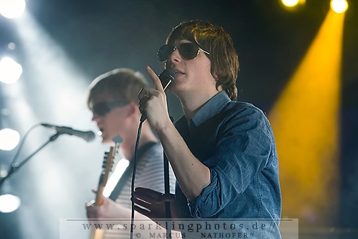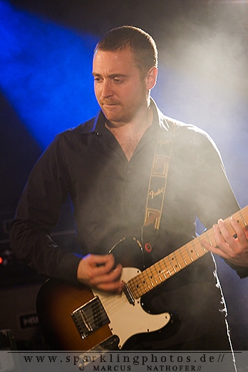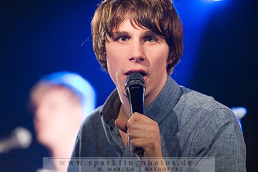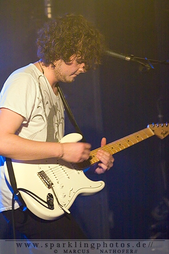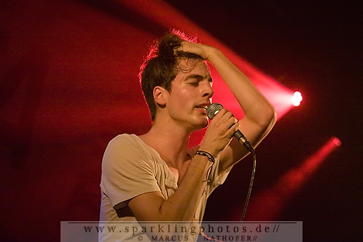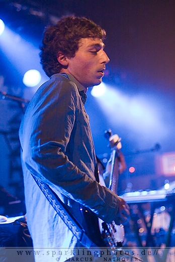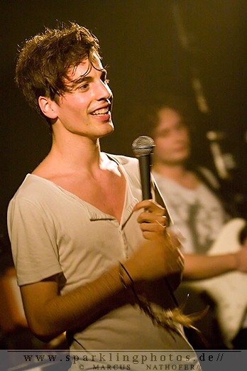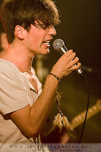 Die Band aus Düsseldorf besteht aus: Davis Kirkendall, Tim Potz, Daniel Hofstadt, Oliver Dlugosch und Markus Zoll. Seit 2007 besteht diese Band, die schon einige Preise abgeräumt hat. Uns erwartete „Elektro Rock“, mit dem Begriff wird die musikalische Richtung der Fünf häufig beschrieben. Davis Kirkendall tobt sich auf der Bühne aus und zieht die Fans mit. Die Erscheinung des Sängers allein fällt schon auf, da er mehrere Traumfänger mit sich trägt. Für mich ergibt sich aus diesem Bild der Eindruck, dass er sein Publikum packen und mitreißen möchte und genau dies gelingt von der ersten Minute an. Mit lockerer Leichtigkeit und fröhlicher Ausstrahlung wird man mit in der Welt der fünf Düsseldorfer gezogen. Freche Sprüche zwischen den Songs und eine Selbstverständlichkeit die begeistert, begeisterte uns von Liquid Lightning. Die Band möchte ansprechen und lädt zum Mitmachen ein, dafür eigens mitgebrachte Knicklichter werden dem Publikum zugeworfen. So wird es noch etwas bunter in der Kufa. Songs wie „We Are Electric“, „You Want It All“ und „Sun“ machen richtig, richtig Spaß und neugierig auf das Debütalbum. Sie bleiben im Herzen, verleihen ein zufriedenes Lächeln sowie ein Gefühl von Leichtigkeit. Zwei Gratissongs kann man sich bereits jetzt schon von der Bandhomepage herunterladen um die Wartezeit auf das Album zu verkürzen. Wie Wirbelwinde rocken die Musiker und fegen über die Bühne und Fans hinweg. Werden eben noch Anweisungen zum Mittanzen und Mitsingen gegeben, hüpft der Sänger im nächsten Moment ins Publikum und tanzt mit seinen Fans. Sympathisch bedanken sie sich immer wieder beim Zuhörer. Wir bedanken uns für einen quirligen und erfrischenden Auftritt.