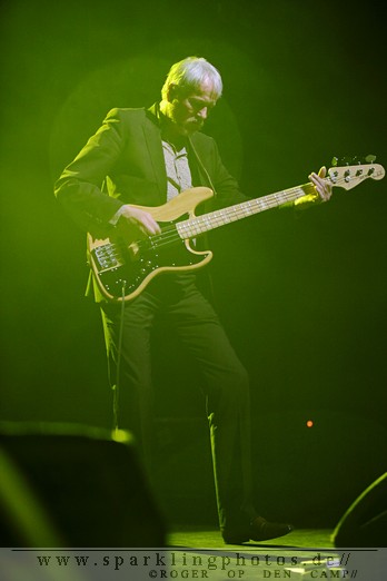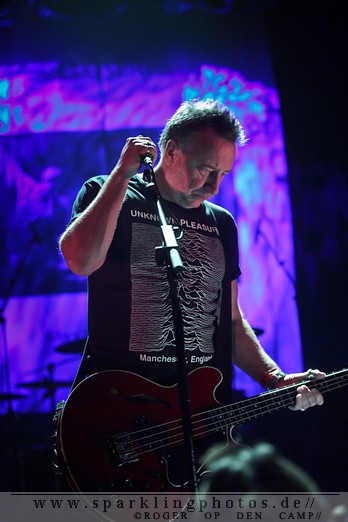 Überraschungen oder Veränderungen an der Tracklist des Albums wird es nicht geben, außer dass Peter neben seinem Standardinstrument in eine Melodika, oder besser gesagt Key-Flute (das gleiche Instrument welches auch Clan Of Xymox nutzen) prustet. Das Publikum in Eindhoven lässt es sich gut gehen und feiert die neu performten Tracks in ausgelassener Stimmung ab. Jedes Stück ist ein Klassiker, bei dem jeder Anwesende textsicher mit einstimmen kann. Der Herr mit dem Irokesen- Haarschnitt am Mikrofon und dem locker umgehängten Bass macht einen ebenfalls zufriedenen Eindruck, auch von einem überwältigenden Schwall Applaus lässt sich der Mancunian nicht aus der Ruhe bringen. „Closer“ ist schnell durchgespielt, was sich die Musiker als Zugaben ausgedacht haben steht noch in den Sternen. Erst als die komplette Mannschaft wieder im bunten Scheinwerferlicht steht wird das Geheimnis gelüftet. Es gibt nicht nur eine Zugabe, sondern gleich einen ganzen Satz klingender Glückseeligkeit. Die Beratung hinter der Bühne mit Hook Junior und seinem Vater hat unterm „Closer“ Strich ein gutes Ergebnis für die wartenden Fans ergeben. – nämlich: wir spielen das gesamte Set wie vor 30 Jahren! Vor Freude strahlen die Augen der Fans mit den Schweinwerfern um die Wette. In der nächsten Stunde ist alles vertreten was sich jemals auf den Factory- Records gedreht hat. Für diejenigen die damals nicht dabei waren ist es ein bisschen wie Jurassic Park wenn die Klänge der Urzeit zu Leben beginnen.