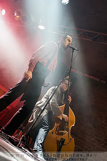 Stücke wie „Witch“, „Koboldkönig“ oder „Doswidanje“ machten nicht nur sehr viel Spaß anzuhören, nein, sie rissen vielmehr mit und animierten zum Mitmachen, Klatschen, Singen und Grölen. Jedes Bandmitglied schien einen irren Spaß an diesem Auftritt zu haben und das zeigten sie auf sympathische Art und Weise. Am Ende der Show dankten Punch’n‘Judy den Fans für die tolle Stimmung. Weiterer Dank ging an den Merchandisingstand, die Leute wurden aufgefordert in diese Richtung zu winken. Außerdem bedankte sich die Band bei Jürgen für einen wirklich tollen Sound. Nach gut 45 Minuten wurde es dann wieder still im Saal der Matrix.