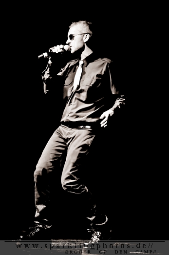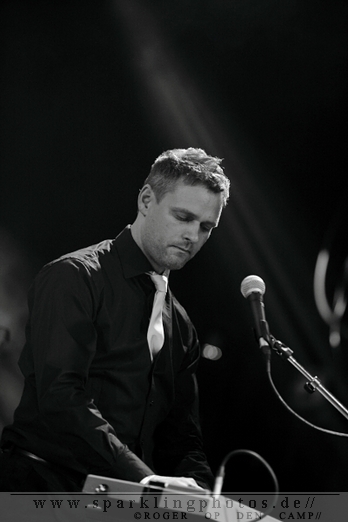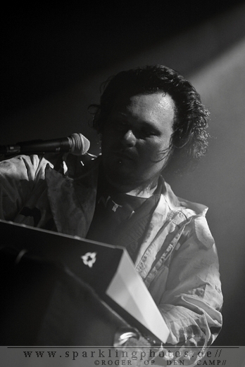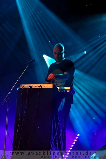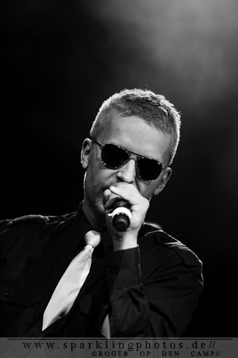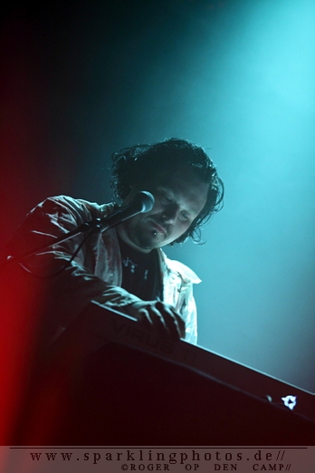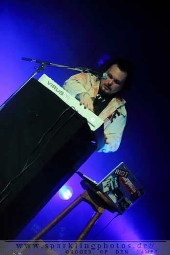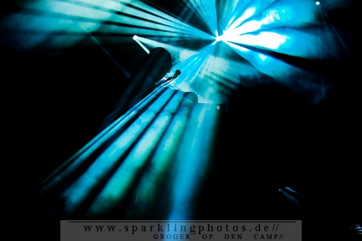 Weiter geht es mit Komor Kommando und das pulsierende Bühnenlicht gibt dem Ganzen jetzt einen fast spacigen Look. Schon bei Substaat hatte sich die Halle gefüllt, doch jetzt ging es umso schneller. Jeder Song von Komor Kommando hat seine eigene Atmosphäre, was in diesem stark limitierten Genrefeld schon eine echte Leistung ist. Wobei Song auch fast übertrieben ist, denn Gesang sucht man bei Komor Kommando vergeblich, trotzdem wissen „Triggerfinger“, „Love Your Neighbor“ und Co zu überzeugen. Sebastian Komor versucht das Publikum beim Gig immer wieder mit Sprüchen wie „I want to see your hands“ einzubeziehen und nach wenigen Minuten wirkt dies auch und das Publikum beginnt zu schreien, winken und zu tanzen.