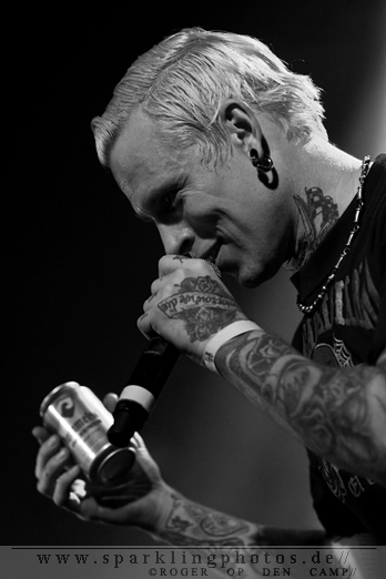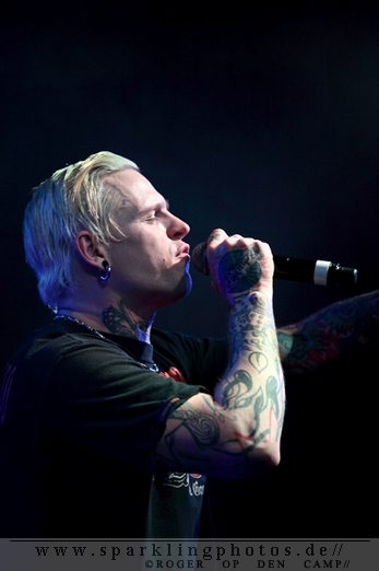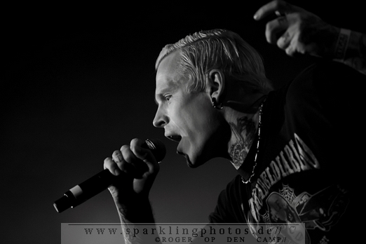 Nun ist es Zeit für den letzten Act des Abends, die Headliner Icon Of Coil. Andy LaPleagua kennt man mittlerweile besser durch sein Projekt Combichrist, doch Icon Of Coil waren davor und ebenfalls sehr erfolgreich. Und wenn man bedenkt, dass Sebastian Komor in Kanada wohnt und dass alle drei Mitglieder noch in anderen Formationen aktiv sind, ist es heute eine der seltenen Gelegenheiten Icon Of Coil mal wieder live zu erleben. Das Equipment entspricht auf der Bühne dem von Komor Kommando zuvor, aber nun sind sie zu dritt: Andy LaPlegua, Sebastian Komor und Christian Lund (NorthBorne). Wie schon im Interview angedeutet geht die Show mit einem quer über die Bühne laufenden Andy LaPlegua los, der wie ein Tiger agiert während „We Need“ das Set eröffnet! Man gibt uns im wahrsten Sinne des Wortes was wir brauchen und bei Songs wie „Dead Enough For Life“ spritzt das Adrenalin fast aus ihm und uns heraus. In Anspielung auf unser Interview kündigt er kurz darauf „Regret“ mit den Worten „this song is more than 2000 years old …“ an und dieser große Hit der Band ist sichtlich auch einer ihrer bekanntesten. Es folgenden weitere punshende Beats bei „You Just Died“ und „Stimulated“ bevor einer meiner persönlichen Highlight erklingt: „Existence In Progress“. Die Bassfrequenz ist für mich perfekt und !Persuit“ hebt die Temperatur in der Halle noch einmal ein paar zusätzliche Grad an. Vielleicht ist „Regret“ einer der bekanntesten Songs, aber ganz sicher nicht die Nummer eins. Diese ist für „Shelter“ reserviert und die hat man sich für das Ende aufgespart. Wie schon bei Substaat lassen die nachklingenden Synthsounds das Set ausklingen und spätestens jetzt können alle Fans begeistert nach Hause gehen.