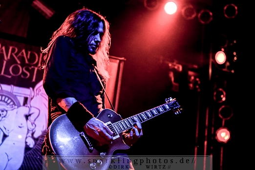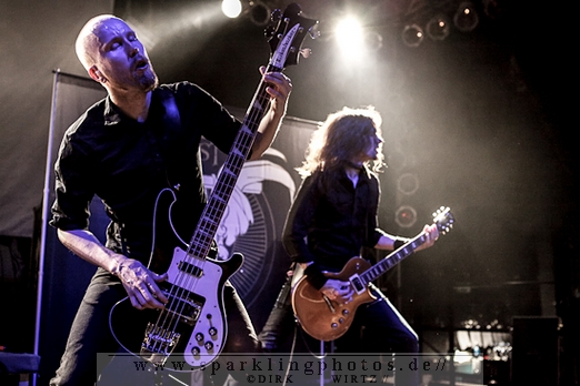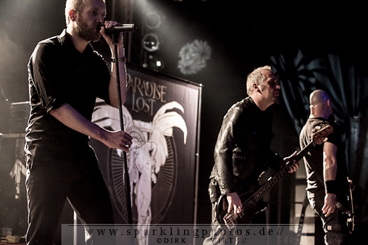 Der Querschnitt durch fast alle Paradise Lost Alben nimmt nach noch nicht einmal einer Stunde Spielzeit mit dem Titelstück des aktuellen Albums „Tragic Idol“ und dem 2007er Hit „The Enemy“ sein vorläufiges Ende. Lange lassen sich die Herren bitten, bevor sie für den Zugabenteil noch mal auf die Bühne kommen. Bei „One Second“, „Fear Of Implending Hell“, „Faith Divides Us – Death Unites Us“ geben Paradise Lost alles und beim letzen Song des Abends „Say Just Words“ bebt die Essigfabrik endgültig. Danach ist dann aber tatsächlich schon Schluss – für eine Band die über 20 Jahre dabei ist und einen solchen Backkatalog vorweisen kann leider viel zu kurz.