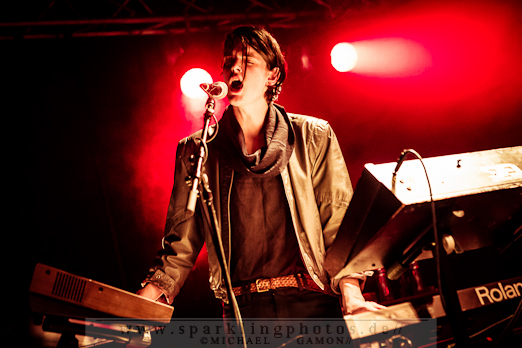 Nicht minder begabt geben sich die Pioneers Of Love, die wie die beiden anderen Bands ebenfalls in den Niederlanden zuhause sind. Sie vereinen synthetische Klänge mit Gitarrenklängen zu einem New Wave Sound der die erst noch zurückhaltenden Fans im Perron 55 zunehmend zum Tanzen bringt. Sänger Jeroen Grendelman erinnert beizeiten stimmlich an Placebo Frontmann Brian Molko, weiß sein Organ aber durchaus auch zu variieren. Auch Pioneers Of Love und ihr Debütalbum „Contact“ aus dem letzten Jahr sollte man weiter auf dem Schirm behalten.