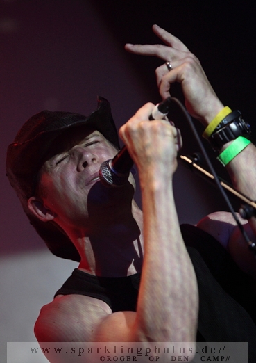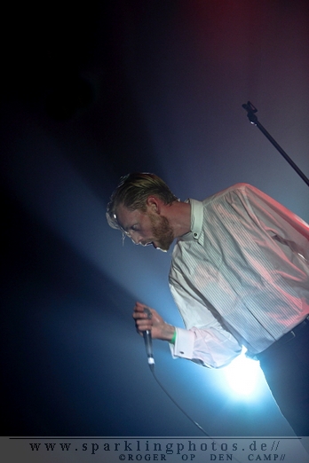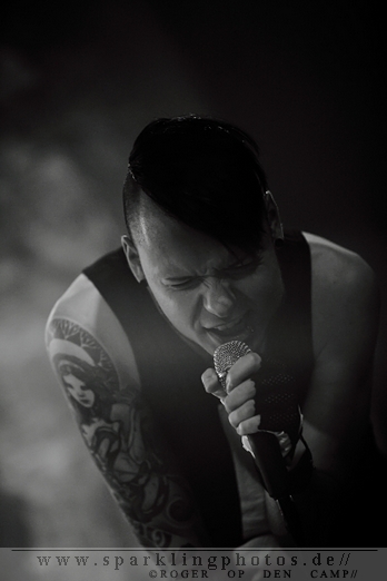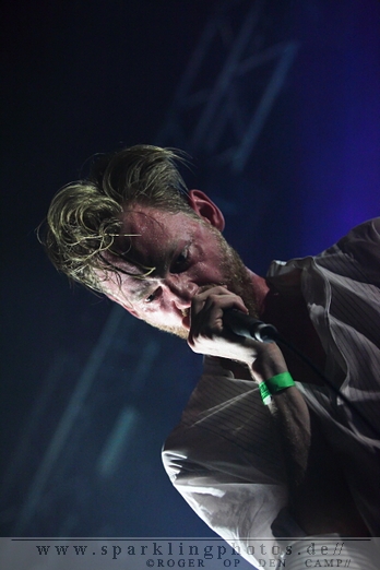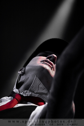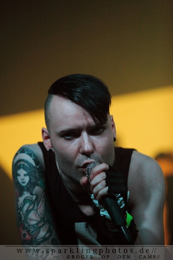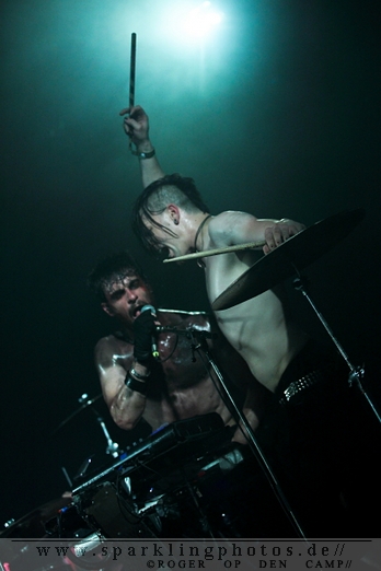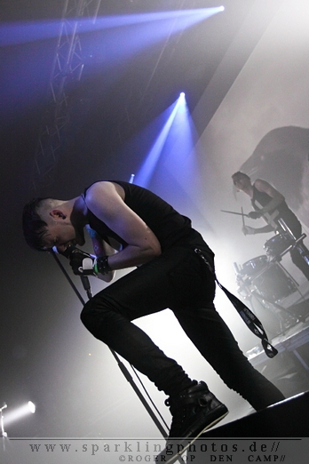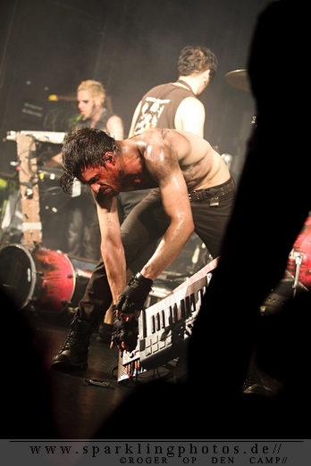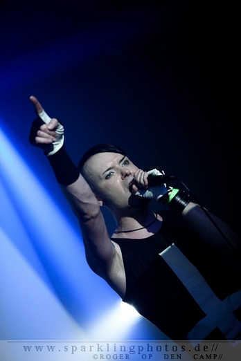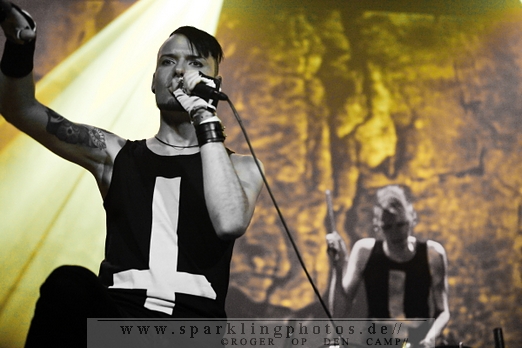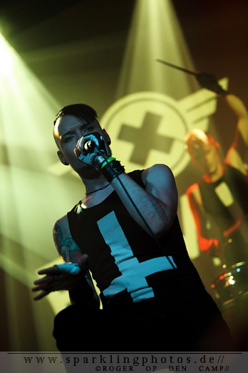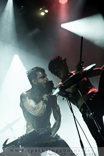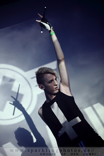Wir blieben noch etwas im Tivoli de Helling, um einen unserer persönlichen Headliner des Festivals zu sehen: Aesthetic Perfection [GALLERY]. Eine Woche zuvor erst hatte AP die Mainstage auf dem Amphi Festival gerockt. Schauen wir doch mal, ob es hier genauso gut funktioniert! Glücklicherweise kamen die Leute nun von den anderen Locations in Richtung Tivoli, so dass der Raum sich nach und nach immer mehr füllte. Zum ersten Mal war es heute richtig voll; natürlich nicht zu vergleichen mit dem Andrang auf dem Amphi Festival, da es hier wesentlich kleiner war und der Auftritt auch in einer Halle stattfand. Drummer Tim Van Horn preschte so stark auf seine Felle ein, dass man teilweise das Gefühl hatte, er würde sicher die nächsten 1-2 Tage erst einmal ziemlich ausgelaugt sein. Offensichtlich erholt er sich aber immer wieder recht schnell. Darüber aber später mehr, in Ordnung? Haben AP die Bühne im Tivoli gerockt? Ja, das haben sie! Besonders der Übersong The ones berührte die Fans und veranlasste sie, ausgiebig zu tanzen.