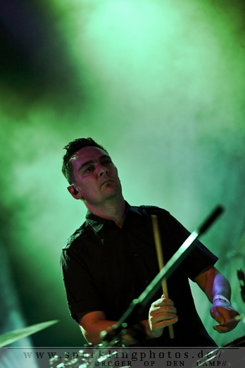 wird man wahrscheinlich In The Nursery ebenso lieben, auch wenn es von Grund auf schwierig ist, diese beiden Band miteinander zu vergleichen. In The Nursery liefern eher etwas mehr Uptempo Songs, die in Richtung New Wave/Neoklassik tendieren. Der Sound der großen Drums auf der Bühne ist wirklich bombastisch und fährt durch den ganzen Körper. Eine wundervolle Show mit tollen und passenden Lichteffekten! Setlist: