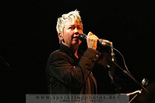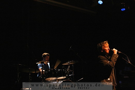 Tanzbarkeit und Melancholie reichen sich in der Klangwelt von Anne Clark stets die Hand. Beim Vortragen ihrer lyrischen Texte ändert sich allerdings nichts. Die sympathische Musikerin bewegt sich nur minimal, wiegt sich nach vorn und lehnt sich an das Mikrofon, dann steht sie stumm und zufrieden auf ihre Fans guckend da, wie ein Schäfer der seine Herde in Schach hält. In den instrumentalen Augenblicken stellt sich Anne Clark einen Schritt in den lichtlosen Winkel hinter das Mikro.