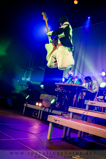 Zum bunten Fest soll auch gefeiert werden, mit „Anti, Anti“ fegen Bonaparte das FZW ordentlich durch und setzt die Meute in Bewegung. Ein hitziges Knäuel aus Armen und wippenden Körpern breitet sich vor der Bühne aus. Schweißperlen glitzern im Neonlicht. Von der Bühne gibt es zusätzlich eine Glimmerdusche, damit alles funkelt und glitzert. Neben den Songs des aktuellen Albums „Sorry We`re Open“ sorgen Stücke vom Zweitling wie „My Horse Likes You“ oder „Computer In Love“ für ein schwitzendes Vergnügen.