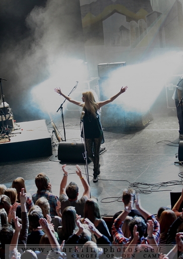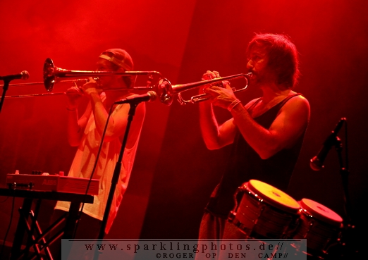 Nach einem instrumentellen Start geht es richtig los und Mette Lindberg betritt die Bühne mit dunkler Sonnenbrille und einem glitzernden, glamourösen Kleid. Ihre Stimme ist einfach wundervoll und die anderen Bandmitglieder spielen die Songs ohne große Pausen und tauschen dabei beizeiten die Instrumente und unterstreichen dadurch ihre künstlerische Vielseitigkeit. Und manchmal, aber nur manchmal, klingen The Asteroids Galaxy Tour bei ihren gedämpften Songs sogar ein wenig wie Hooverphonic. Ansonsten ist der Sound der Band aber äußerst eigenständig, gespickt mit Einflüssen psychedelischer Sounds der Siebziger Jahre. Und dass dies auch ein größeres Publikum ansprechen kann, haben sie bei ihrem Pink Pop Festival Auftritt 2012 eindrucksvoll bewiesen. Jetzt, vier Monate später und lediglich 5 Kilometer vom Pink Pop Gelände entfernt, zeigen sie dies auch in einem gut gefüllten, aber nicht ganz ausverkauften Parkstad Limburg Theater. Trotzdem scheint ihre Musik eher für die großen Bühnen und viele Zuschauer zugeschnitten zu sein, denn das Publikum in Heerlen zeigt sich vor allem zu Beginn recht zurückhaltend. Zum Glück legt sich das im Laufe des Auftritts und die Stimmung wird zum Ende hin doch so gut, dass das Publikum einen Nachschlag fordert, der in Form von „The Golden Age“ und „Major“ natürlich dankend angereicht wird.