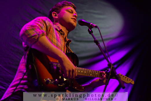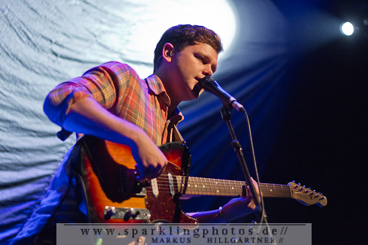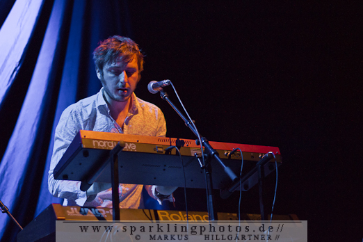 Doch zunächst sollten noch die zwei Bands Kowalski und Alt-J die Stimmung ein wenig mehr aufheizen und uns von ihrer musikalischen Qualität überzeugen. Aus dem Grund, dass an diesem Abend zwei Supportbands spielen sollten, begann die erste Band Kowalski dann recht zeitig um 19:40 Uhr in der noch nicht ganz gefüllten Halle zu spielen. Das Publikum war ihnen gegenüber geteilter Meinung und so wurde die Zeit von einigen dazu genutzt sich noch mal ein Bier oder andere Erfrischungen zu holen. Das Quartett auf der Bühne ließ sich davon jedoch nicht stören und spielte unbeirrt ihren leicht übersteuert klingenden Sound weiter. Die Bühne war größtenteils verhangen und verhinderte so die Sicht auf das Equipment und Bühnenbild der späteren Hauptband. Die Stilart von Kowalski erinnert ein wenig an den gut bekannten und sehr eingängigen Weststaaten Power-Pop Sound. Dabei zeigten sie jedoch wenig Innovatives und lediglich im letzten der sechs Lieder, die sie präsentierten, gab es ein wenig mehr Power in Form stärkerer Gitarren-Riffs. Danach verabschiedeten sie sich vom Kölner Publikum und merkten noch an, dass man sie, ihre Shirts und Platten nach dem Konzert noch am Merch antreffen könne. Dann verließen sie die Bühne und die Umbauarbeiten für die nächste Band Alt-J konnten beginnen. Nach einer nicht besonders langen Wartezeit zeigten sich dann die Mitglieder der Band Alt-J im E-Werk. Das Quartett bestehend aus einem Drummer, Bassisten, Keyboarder und einem Sänger ließ zunächst auf eine relativ konventionelle Rockband schließen. Was hingegen nicht so konventionell wirkt ist ihr Soundbild. Sie mischen Indierock mit vielen interessant klingenden Elektropop Einflüssen, die der Sänger, Joe Newman, mit einer gospelartigen Stimme ergänzt. Die britische, aus Leeds stammende Band bot der Masse eine sehr abwechslungsreiche Tracklist an, welche sehr