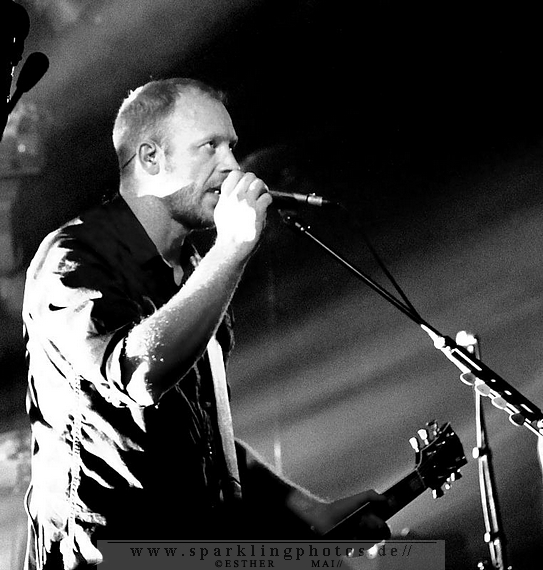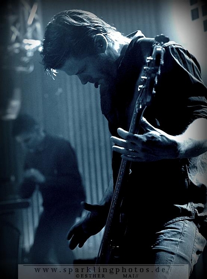 Doch zurück nach Holbaek: Mit Alt er hårdt starten Nephew ruhig, meditativ und düster, dennoch rockig und gitarrenlastig in den Abend. Simon nimmt, im Gegensatz zum Rest der Band, sofort Kontakt zum Publikum auf, die Zuschauer reißen ihr Hände nach oben und klatschen den Takt mit. Bei Åh gud (jeg håber du holder øje med mig) groovt der übermächtige Bass die Zuschauer ein, der mehrstimmige Gesang verleiht dem Song die nötige Power. Und wie immer bietet Bassist Kasper ein wunderbares Schauspiel: Gar nicht so einfach das Plektron loszuwerden, wenn man beide Hände voll hat und es nicht braucht. Wohin also damit? Ganz einfach: wenn er die Saiten zupft, schiebt er es sich zwischen die Zähne, um es rechtzeitig wieder auszuspucken, um seinen Einsatz beim Chorgesang nicht zu verpassen. Immer und immer wieder. Ein Plektron auf Wanderschaft.