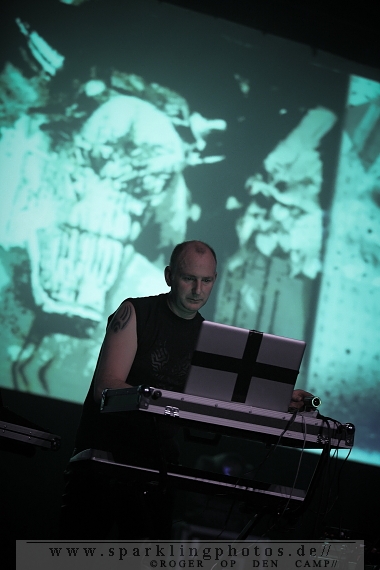 Konnten The Invincible Spirit noch auf ein volles Haus und eine tanzende Menge bauen, ist dies bei Vomito Negro eine ganz andere Geschichte. Vomito Negro haben ihre Fanbase, die sie seit vielen Jahren kennen und lieben, neue Fans kommen heutzutage jedoch nur noch selten hinzu. Sie stehen in krassem Kontrast zu TIS, was deutlich die Vielseitigkeit in der Szene zeigt. Vomito Negro zeigen harten und rohen EBM und das ist nun mal nicht jedermanns Sache. Aber gut, das ist ihr Stil und den machen sie sehr gut. Für Fans des Genres gibt es auf der Bühne viel zu sehen und das Set mit Liedern wie Enemy Of The State und No Hope No Fear war absolut professionell.