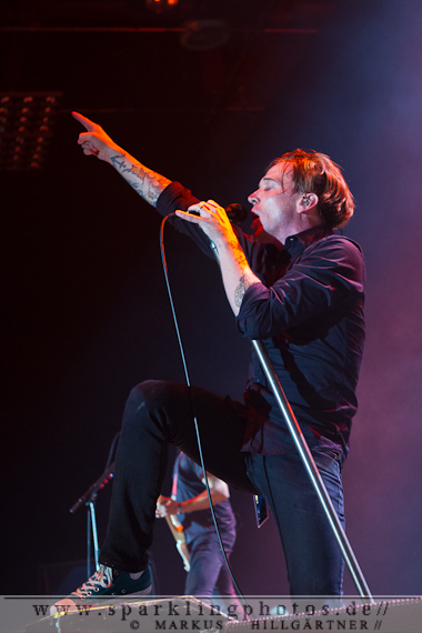 Die ersten Musiker des Abends waren die Wahl-Münsteraner von den Donots, welche aufgrund eines Festivals am Wochenende erst kurz vor dem Konzerttermin ihre Teilnahme öffentlich gemacht hatten. Als das Saallicht erlosch und Ingo Knollmann (Gesang, Piano), Guido Knollmann (Gitarre, Gesang), Alex Siedenbiedel (Gitarre, Gesang), Jan-Dirk Poggemann (Bass, Gesang) und Eike Herwig (Schlagzeug) auf die Bühne kamen war die Stimmung schon enorm und die Band freute sich sichtlich über den herzlichen Empfang, welcher eines Headliners würdig war.