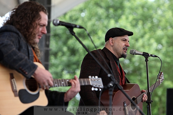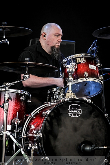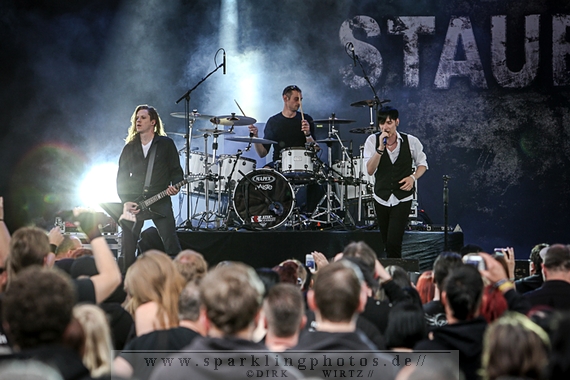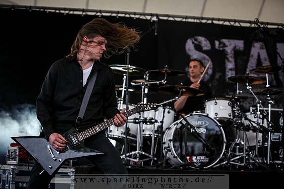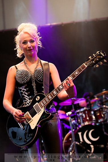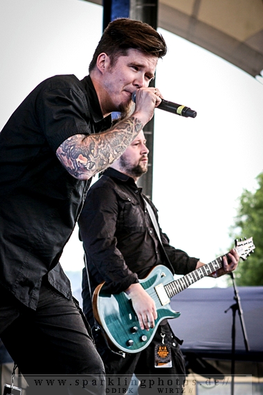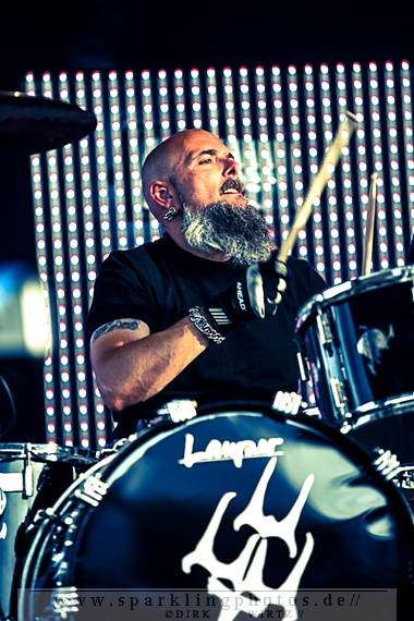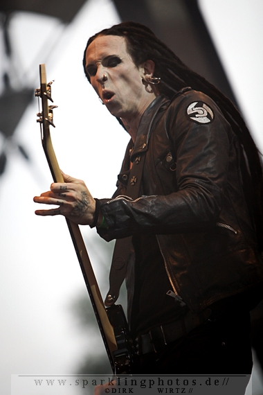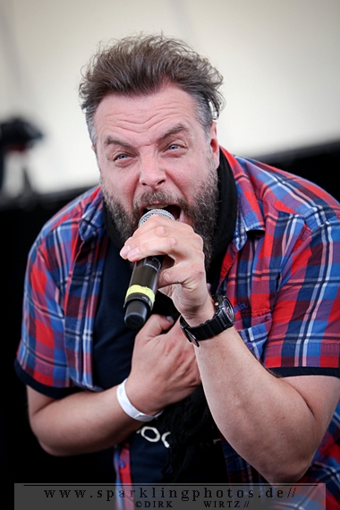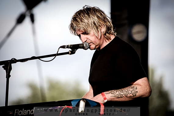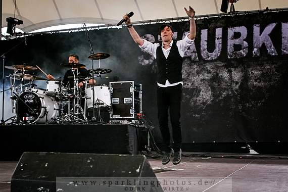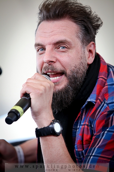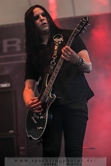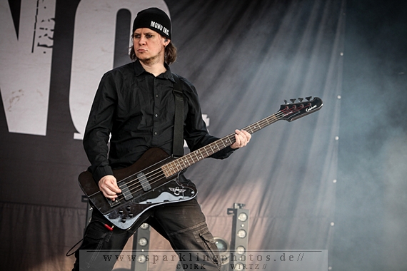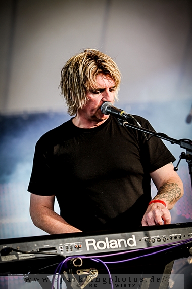 Richtig voll wird es dann wieder bei Rotersand [GALLERY]. Die mittlerweile nur noch zwei Akteure in Person von Sänger Frontmann Rascal Nikov und Krischan J. E. Wesenberg an den Reglern locken viele Besucher zum Tanzen nach vorne. Mit Merging Oceans, Exterminate Annihilate Destroy, Waiting to be born und War On Error hat die Band aber auch einige gut tanzbare Clubhits im Repertoire. Nach so viel elektronischer Musik in Folge kommen mit Staubkind [GALLERY] nun deutliche rockigere Töne aus den Boxen. Die Band um Sänger Louis Manke tut sich allerdings etwas schwer den Funken auf die Menge überspringen zu lassen. Zwar haben die Deutschrocker den Platz vor der Bühne im Griff, auf den Rängen zeigt sich jedoch eher Gleichgültigkeit als Begeisterung. Dennoch tut diese Abwechslung dem Festival gut und bereitet die Besucher bestens auf die beiden Headliner des Abends vor, bei denen auch die Gitarren im Vordergrund stehen. Mit Mono Inc. [GALLERY] haben die Veranstalter die Band der Stunde als Co-Headliner verpflichtet und zudem eine Truppe die durch eine beeindruckende Live-Präsenz überzeugt. Die Hamburger starten mit My worst enemy, gefolgt von Symphony of pain und der aktuellen Single Heile heile Segen, dem ersten deutschen Song der Gruppe. Etwas gewöhnungsbedürftig ist dieses neue Stück schon. Mit im Gepäck haben Mono Inc. noch einen Überraschungsgast und zwar niemand Geringeres als Joachim Witt, mit dem sie zusammen die Weltpremiere des Stücks Kein Weg zu weit zelebrieren. Dieses Highlight wird zusätzlich von einem Mädchenchor gesanglich begleitet. Weiter geht es dann mit zahlreichen Hits der Band wie Arabia, After the war und Revenge bis mit Get some sleep unweigerlich der letzte Song gespielt wird.