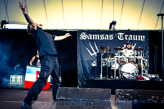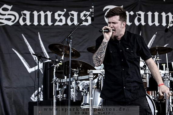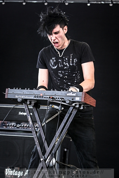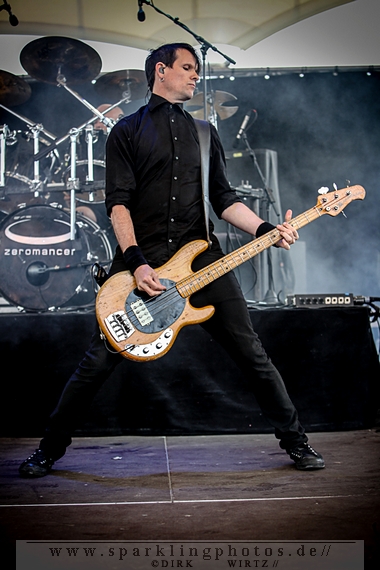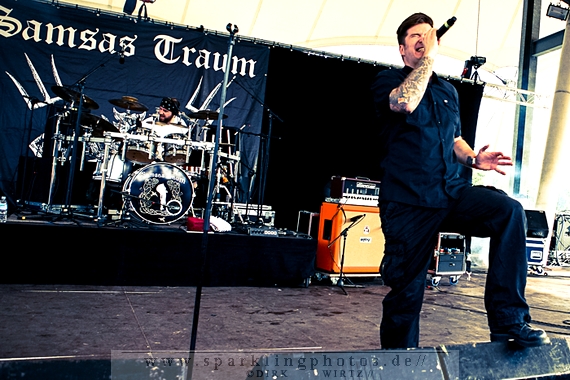 wieder und die Party kann bei mittlerweile strahlendem Sonnenschein weitergehen. Die drei Musiker aus Bottrop geben bei ihrem quasi Heimspiel alles und lassen die Meute toben. Neben den bekannten Tracks der Elektro-Combo wird vor allem das Editors Cover Papillon viel umjubelt. Mit Zeromancer [GALLERY] betritt als nächstes eine der meist gewünschten Bands die Bühne. Die norwegische Synth-Rock-Band muss bei ihrem Gig auf eigenes Equipment verzichten, da die Fluggesellschaft die gesamte Ausrüstung woanders hingeschickt hat. Dennoch schaffen es die sympathischen Rocker das Publikum zu begeistern. Das Comeback des Festivals bieten Samsas Traum [GALLERY]. Nach einem enttäuschend Auftritt auf dem Blackfield vor ein paar Jahren hat die Band noch eine Rechnung mit ihren Fans zu begleichen und spielt dieses Mal neben brandneuen Stücken vom Asen‘ka Album vor allem ihre ganz großen Hits. Zwar gibt es zu Beginn gleich ein kleines Problem mit der Technik, aber schon bald sind Band und Fans versöhnt und die Polonaise zur Endstation Eden zieht über das Gelände, bevor zum Abschluss bei Ein Fötus wie du die obligatorische Wall Of Death gebildet wird.