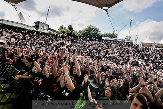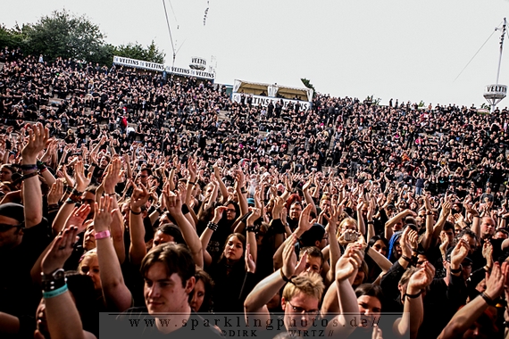 und Rose im Mund lässt gleich zu Beginn ein paar Damenherzen höher schlagen, bevor es mit Exzess Express direkt richtig abgeht. Eine kurze Begrüßung mit den Worten „Wir sind Eisbrecher“ und schon geht die wilde Fahrt weiter. Willkommen im Nichts, Antikörper und Leider heißen die nächsten Songs und es scheint als wollen die Jungs der tobenden Menge keine Ruhe mehr gönnen an diesem Abend. Eisbrecher geben während ihres 1 ½ stündigen Auftritts nicht nur was auf die Ohren, sondern bieten auch was fürs Auge. So dreschen bei Amok beispielsweise die Bandmitglieder wieder auf Metallfässer ein und zu Heilig kommen einige weibliche Eisbrecher Fans in Nonnenkostümen auf die Bühne. Den absolut überragenden Abschluss bilden dann This is deutsch, Verrückt und das Cover Miststück / Rock me Amadeus, bei dem Alex nochmal ausgiebig mit den Fans interagiert bevor er zusammen mit seinen Bandkollegen pünktlich um 23 Uhr das Blackfield 2013 für beendet erklärt.Für alle die es kaum noch erwarten können: Der Vorverkauf und die Bekanntgabe der ersten Bands für das Blackfield 2014 (20.-22.06.) werden am Montag, den 12.08.2013 stattfinden.