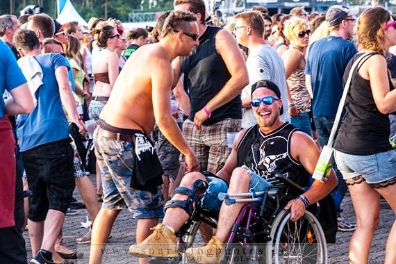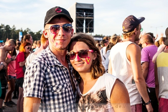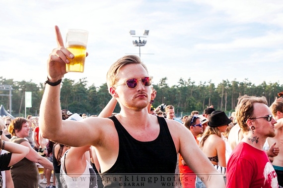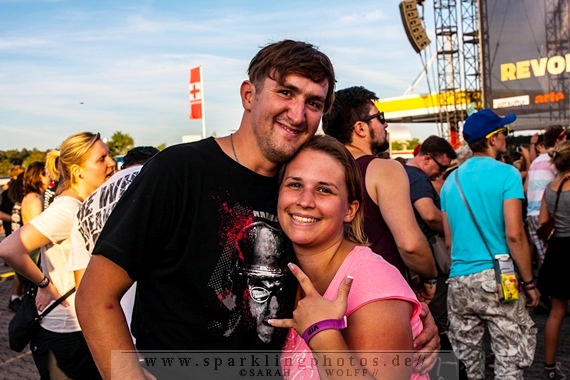 Während die Luft flirrt, die Bierstände immer mehr geleert werden und die Staubwolke rund um die Evolutionstage wabert, ist es auf der Revolution Stage elektronisch: Oliver Koletzki war der erste Act des Tages – leider wirkte er, als würde ihm zur Zigarette der Morgenkaffee fehlen, aber der Gesichtsausdruck ist ja nicht alles. Die Zuschauer die den Weg zur Bühne gefunden hatten, waren zumindest von der tanzbaren Musik angetan. Nachdem er sein Set durchgespielt hatte, wurde er von Lexy und K-Paul abgelöst. Wer jetzt nicht auf die gespielte Musik von den beiden steht, kann sich zumindest an der Optik der beiden Herren erfreuen. Und wem das nicht zusagt: über die LED-Rückwand wurde ein wunderbares Bühnenbild geschaffen – so hatte jeder etwas fürs Auge und/oder Ohr. Wem das aber alles nicht so zusagte, der wanderte vorbei an den Gastronomiebuden zurück zur Evolution Stage.