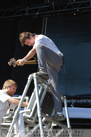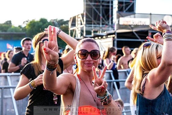 Auf der Revolution Stage geht es wieder etwas kleiner zu. Von Susanne Blech [GALLERY] hatte vor Rock ’n‘ Heim wohl kaum einer was gehört – so werden es jetzt doch aber einige Zuschauer mehr sein, die sich für die Band interessieren. Im Anschluss gibt es wieder sauberen Techno von Baauer, der zum Mittanzen anregt, damit die Gelenke und Muskeln dann für Modestep und deren Dubstep geschmeidig genug sind und es keinen Hinderungsgrund mehr gibt um richtig abzufeiern.