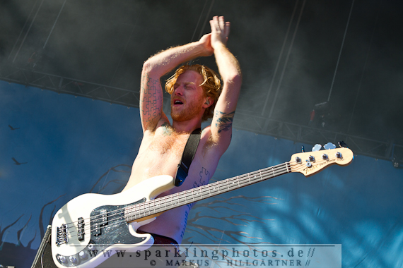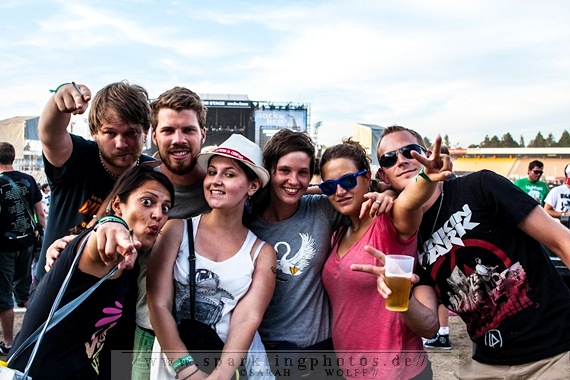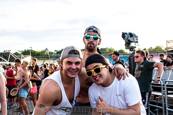 Da die Zuschauer vor der Evolution Stage längst warmgefeiert sind, ist es Zeit für Heaven Shall Burn [GALLERY] (ich verkneife mir hiermit weitere schlechte Wortwitze in Bezug auf das Wetter) auf die Bühne zu klettern und das Metalfeuerwerk so richtig starten kann. Wer 2 Tage Festival durchfeiern kann, der kann auch 3 Tage Festival durchfeiern – und die Rocknheimer beweisen mit dem vielleicht größten Circle-Pit ever -der sich aus dem Front-Of-Stage-Bereich heraus bis hinter die beiden Türme erstreckte- dass diese Annahme nicht von ungefähr kommt und können kaum den absoluten Headliner des Abends erwarten. Vorher „muss“ aber noch eine riesige, bunte Party mit Kraftklub [GALLERY] gefeiert werden. Die Jungs konnten mit Ritalin / Medikinet, Ich Will Nicht Nach Berlin und den Songs Für Liam an diesem Abend sicher einige weitere Fans gewinnen.