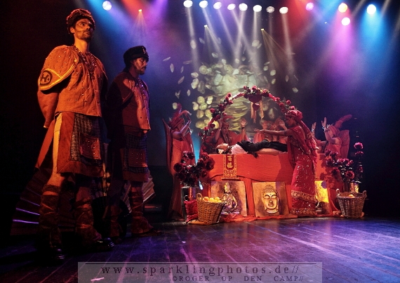 Im Tivoli de Helling schauen wir uns als nächstes Diorama an. Zu unserem großen Bedauern hatten wir bisher nie die Gelegenheit sie einmal live zu sehen. Endlich konnten wir dies wettmachen. Und sie sind richtig angenehm zu hören. Die Musik kann wohl am besten mit Diary of Dreams und vielleicht einem Schuss Frozen Plasma verglichen werden und ordnet sich vor allem im Electro / Darkwave-Sektor ein. Die Band veröffentlichte in diesem Jahr mit even the DEVIL doesn’t care ein neues Album und davon spielten sie natürlich auch einige Songs wie Maison du Tigre, The Scale oder Hope. Aber selbstverständlich durften auch Klassiker wie Exit The Grey, Why oder Synthesize Me nicht fehlen. Da sich der Auftritt um eine Viertelstunde verschoben hate, durften sie leider nicht allzu lang spielen, auch wenn das Publikum deutlich mehr forderte. So blieb uns leider auch Her Liquid Arms verwehrt, schade!