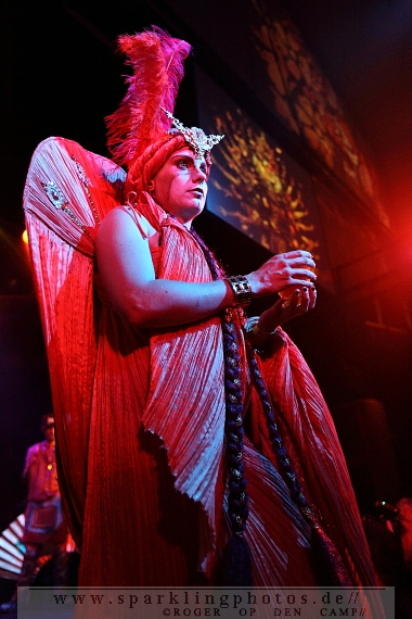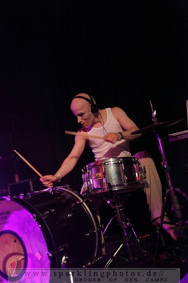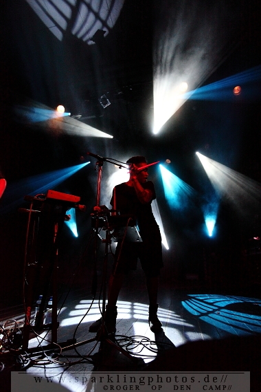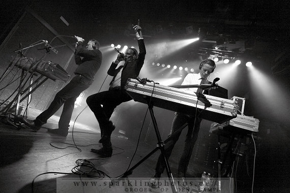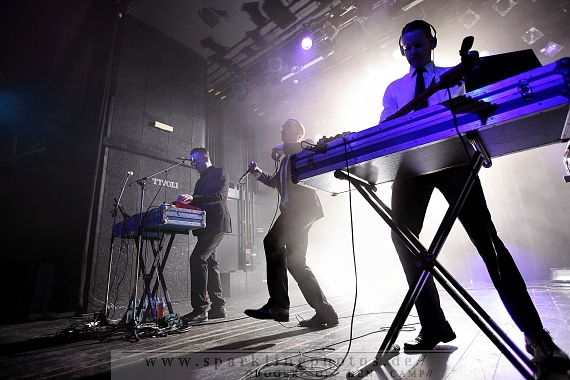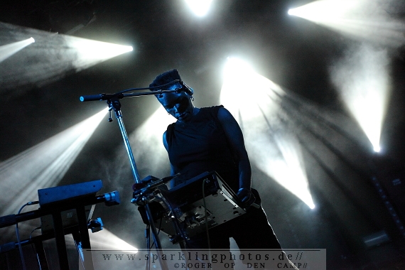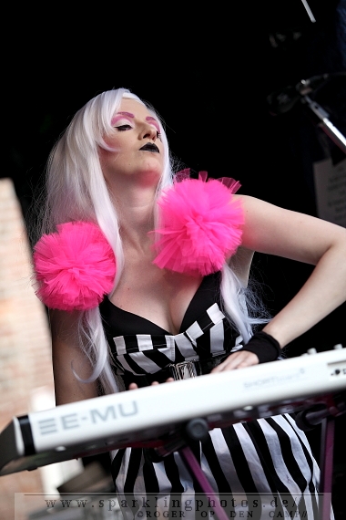Wir nehmen schnell ein Taxi und fahren damit zum Tivoli Oude Gracht, wo Welle: Erdball ihr Publikum nun unterhalten wollen. Die Show beginnt hinter einigen Bildschirmen, so dass zunächst nur Silhouetten zu sehen sind. Die Show ist gewohnt gut anzusehen, die Musik nicht mehr wirklich innovativ, aber who cares! Nach der Ankündigung, dass Fräulein Plastique Welle:Erdball verlässt, haben sie nun einen Ersatz dabei. Sie hatte wohl nur eine maximale Vorbereitungszeit von einem halben Tag und dementsprechend sitzt natürlich noch nicht alles, ist noch nicht hundertprozentig synchron etc, aber für das erste Mal macht sie einen fantastischen Job! Zu hören gibt es derweil Klassiker wie Wir Wollen Keine Menschen Sein, Monoton + Minimal, 23 oder Arbeit Adelt. Ganz wie die Band leiden auch wir unter der großen Hitze und müssen nach draußen an die frische Luft, aber natürlich erst nach der Show.