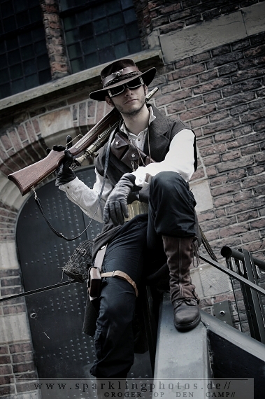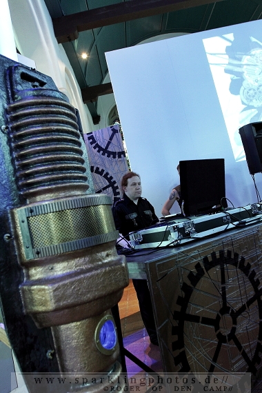 Neben des Auftritts gibt es in der Kirche Leeuwenbergh auch eine Ausstellung von Fotograf Frank Wiersema, der hier seine Arbeiten zum Thema Steampunk zeigt. Seine Bilder erzählen komplette Geschichten und wir werden später auch noch weitere Bilder von ihm im Tivoli Oudegracht sehen.