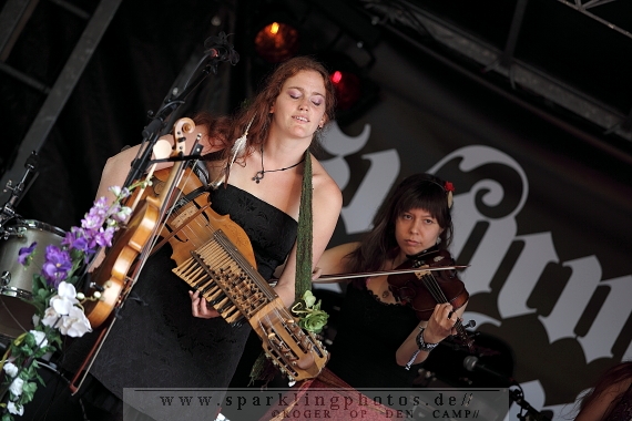 Die Eröffnung des Summer Darkness findet in der Kirche Leeuwenbergh. Wir werden herzlich willkommen geheißen (wörtlich und im übertragenen Sinne) und zwar mit einem High Tea. Der erfrischende Eistee ist eine wahre Freude. Auf den ebenfalls erhältlichen Sandwiches und Cookies ist das Logo des Summer Darkness zu sehen. Es ist alles sehr gut vorbereitet. Jaap Jan Steensma spielt Bach auf einer schönen Flentrop Orgel. Nach der Begrüßung, in der das Programm weiter vorgestellt wird, beginnt der Auftritt von Schwarzblut. Sie tragen wunderschöne Steampunk Kleidung und Steampunk ist auch das Thema dieser Eröffnung. Die Band bedient sich für ihre Musik bei Gothic, Electro und Industrial. Ihre Texte basieren hingegen auf der Poesie von Goethe. Auch wenn sich alles in einer Kirche abspielt, ist es hier definitiv nicht kalt. Schon bald entledigen sich einige Bandmitglieder ihrer Accessoires und Jacken. Wir sehen ein soundmäßig und optisch starkes Konzert, das eine Freude für unsere Augen und Ohren ist. Normalerweise spielen sie in Clubs vor allem tanzbare Songs und gehen vollständig aus sich heraus, doch heute spielen sie meist ruhige Songs. Diese werden oft gefordert und sind somit sehr gut für dieses Konzert geeignet. Am Ende gibt es sogar Standing Ovations; bis dahin war es ein bestuhltes Konzert, auch wenn es vor allem bei den Uptempo Nummern teilweise schwierig war, sitzen zu bleiben.