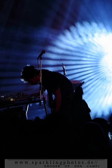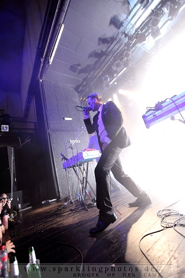 Wir werden uns heute vor allem wieder im Tivoli De Helling aufhalten. Die erste Band die wir dort sehen sind XP8. Diese italienische Band macht Synthpop / Electro-Musik und klingt dabei leider oft wie viele andere elektronische Acts. Ich würde mir wünschen, dass einige Bands mehr Mut zu Innovationen beweisen würden. Aber immerhin ist das Publikum zahlreich erschienen und ihnen scheint es zu gefallen.