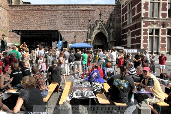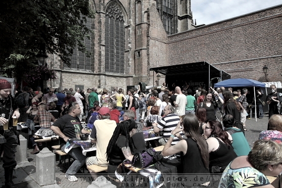 Bevor die letzte Band auf die Bühne geht, verabschiedet und bedankt sich der Organisator des Festivals Kees de Brouwer beim Publikum. Er meint, dass dies wahrscheinlich das heißeste Summer Darkness ever war. Es gibt keine Klimaanlagen in den alten Gebäuden, in denen die Temperatur erheblich steigt. Das nächste Summer Darkness findet im Tivoli in Vredenburg statt. Diese Location wurde in den letzten Jahren renoviert. Hoffentlich bleibt die Atmosphäre in Vredenburg die gleiche wie in Oude Gracht. Wie auch immer, einen Vorteil haben wir schon einmal, denn dort arbeitet die Klimaanlage besser.
