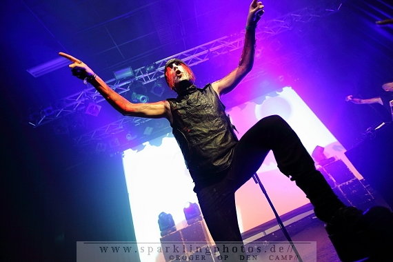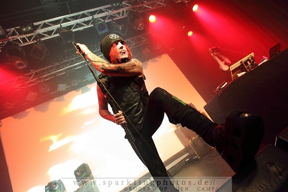 Nysrok Infernalien, Sänger dieser Electro / Industrial Band war zwar stets bemüht das Publikum in Schwung zu bringen und forderte immer wieder Applaus und Jubel, vergass aber dabei scheinbar das Singen. Gelegentlich gab es mal ein Schreien ins Mikrofon, das war es dann aber auch.