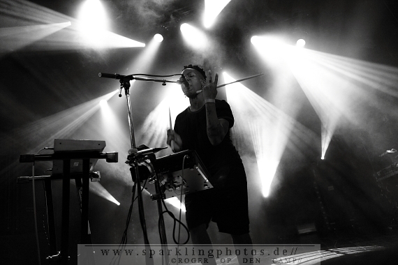 Manchmal trifft man eben die falsche Entscheidung. Schade, dass wir so einen großen Teil vom Set von Light Asylum verpasst haben. Das elektronische Muiskduo benötigt keinesfalls antreibende Worte für das Publikum. Die Energie, die sie mit ihrer Musik ausstrahlen, wird gut von den Besuchern aufgenommen. Auch sie haben sich vom Sound der Achziger anstecken lassen und vermischen Post- Punk, Darkwave und Synthiepop. Zum Schluss singen sie ein fantastisches Cover- und zwar von Human Leagues Seconds. Nach dem Konzert halten wir noch ein kleines Pläuschchen mit der Sängerin Shannon Fuchess. Wir versprechen ihr die nächste Show komplett zu sehen und bekommen noch die Setlist von ihr mit. Darauf schrieb sie in fetten Buchstaben „Dark Allies“ für uns, wütend und mit einem Augenzwinkern, weil wir es verpasst hatten.