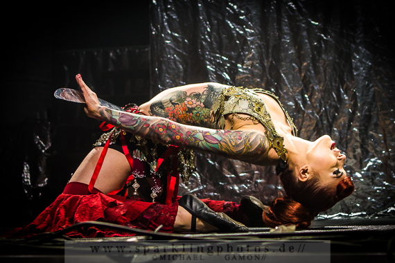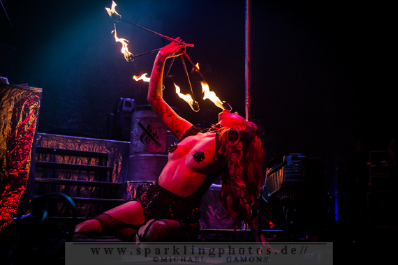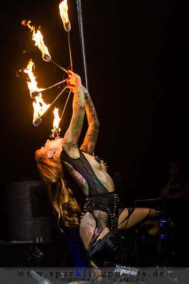 Gegen die „musikalische Kälte“ die mit Eisbrecher in die Hallen ziehen wird, hat der Veranstalter strategisch und Wärme-clever die Damen von den Fuel Girls im Programm platziert. Sexy und mit sehr viel Körperbeherrschung präsentieren die leicht bekleideten Ladys ihre Tanz- und Feuershow. Ob mit Spitzenschuhen und Feuer oder auch an der Polestange, die Mädels wissen einfach wie man die Herren – nein, sicher auch die Frauen – vor die Bühne lockt. Eine sagenhafte Show.
