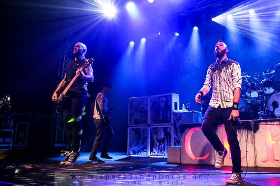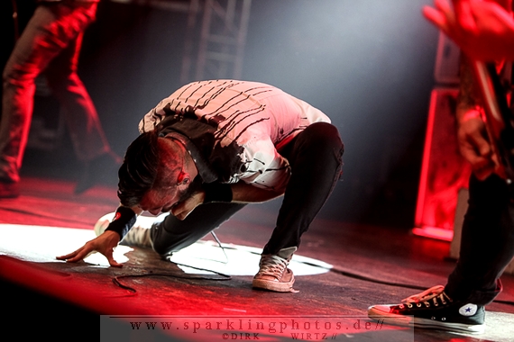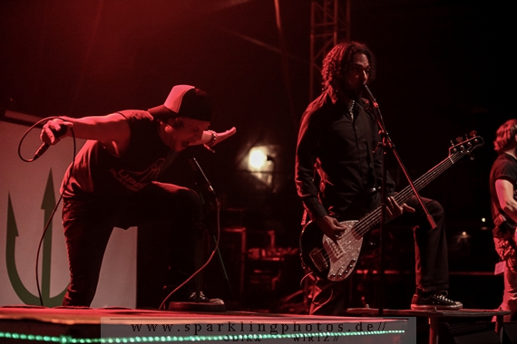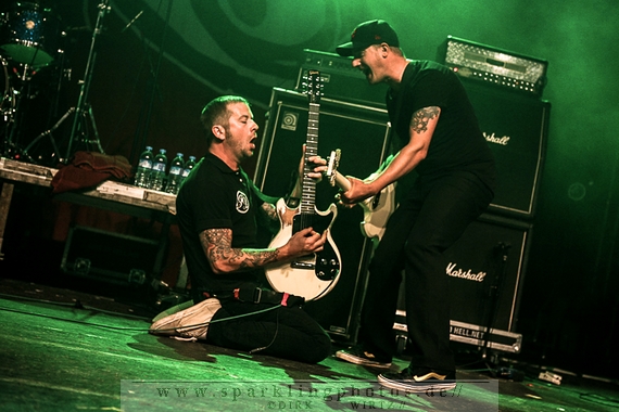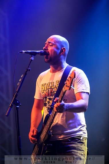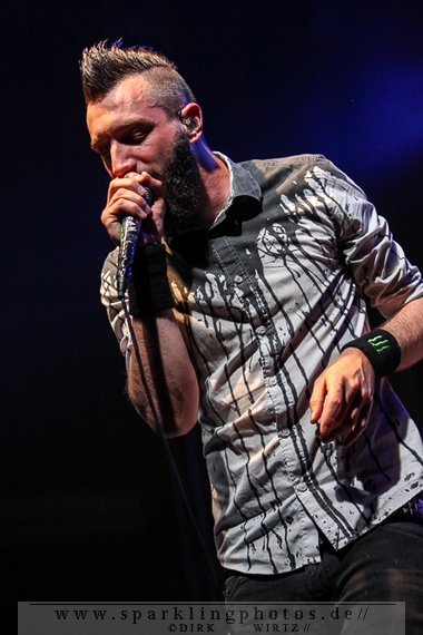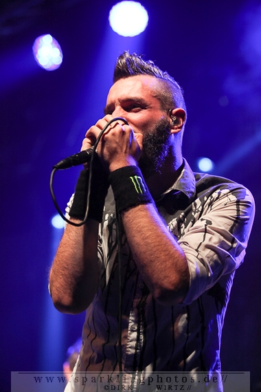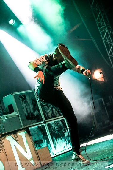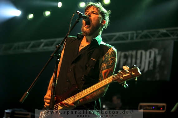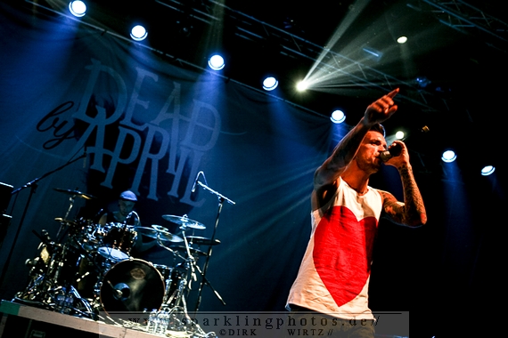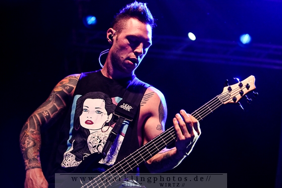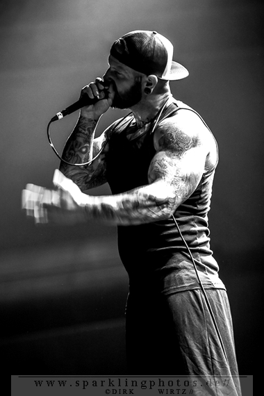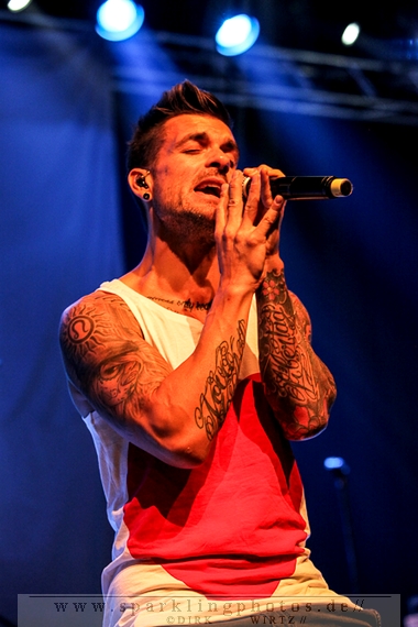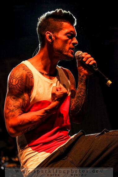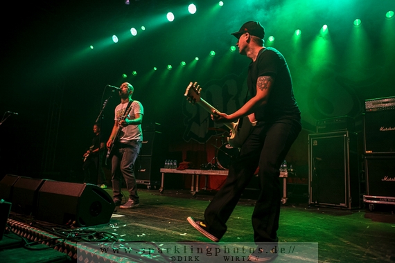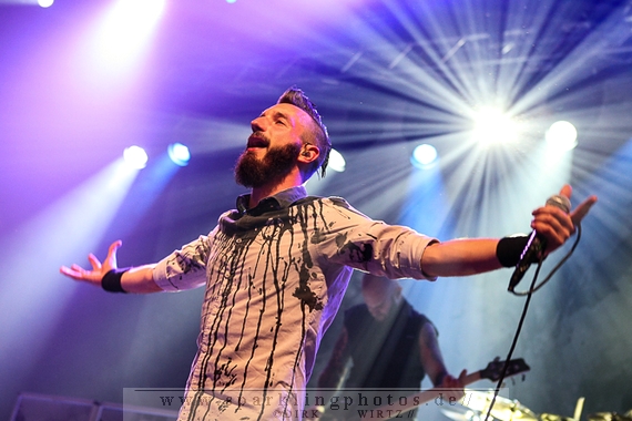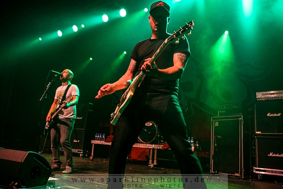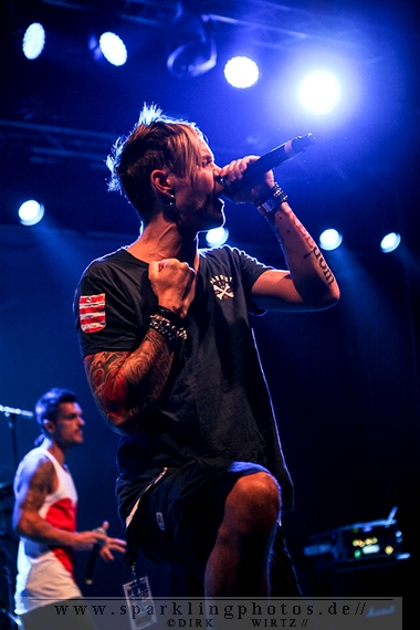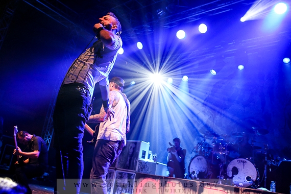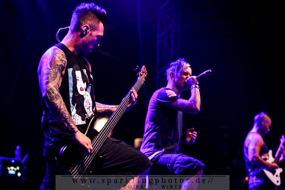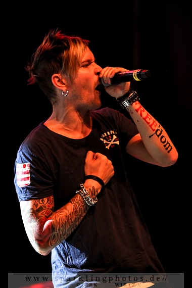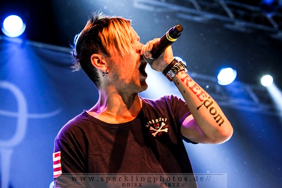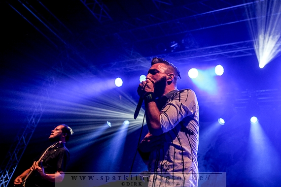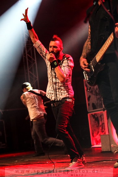 Nach diesem wahrlich kurzweiligen Auftritt erklomm mit Any Given Day [GALLERY] eine lokale Band aus Gelsenkirchen die Bühne. Any Given Day, deren Bekanntheitsgrad sich mit der Coverversion von Rihannas Diamonds schlagartig nach oben katapultierte, legten einen soliden Auftritt auf die Bühne. Hier konnte man schon merken, dass es im Publikum zweierlei Lager gab. Überwiegend Ältere, welche dem Punk’n’Roll zugewandt waren und die eher jugendlichen Fans der härteren Gangart aus der Hardcore-Szene. Letztere wurden auch von Dead By April [GALLERY] bedient. Bei den Jungs war eigentlich zu Beginn des Tages gar nicht klar, ob sie überhaupt auftreten konnten. Wurde doch Sänger Zandro Santiago laut Facebookpage der Band noch ein paar Tage zuvor am Bauch operiert was zur Folge hatte, dass die Band nur ca. 6 Songs spielte. Dies machten die Jungs mit den zwei Sängern aber sehr souverän. Natürlich durfte hier das Killing Joke-Cover Love like blood nicht fehlen.