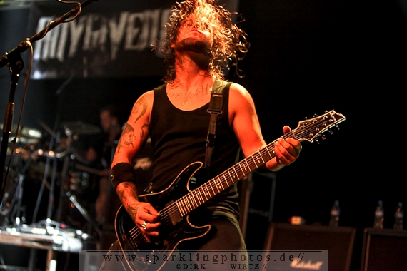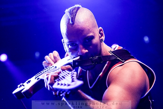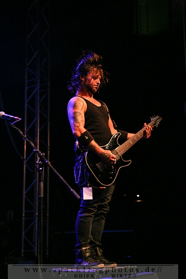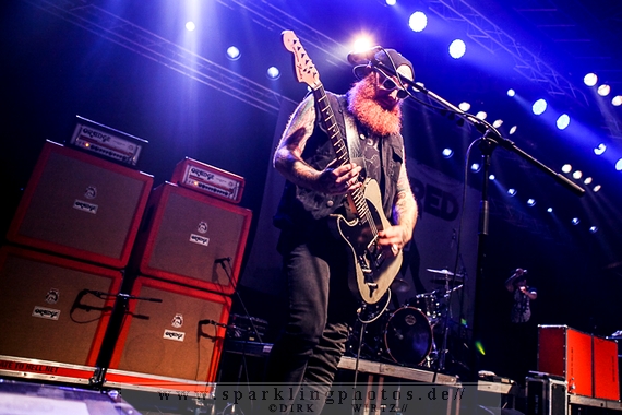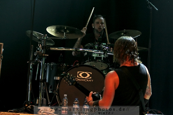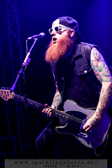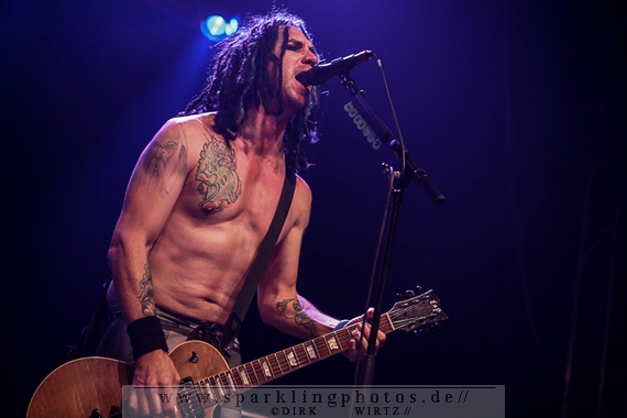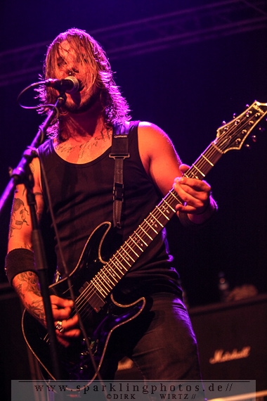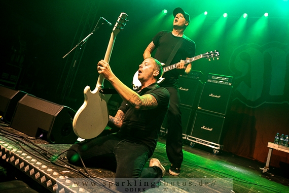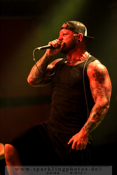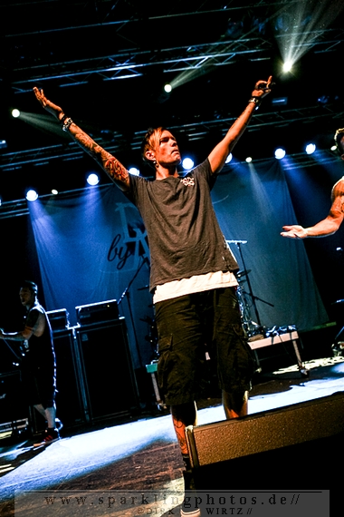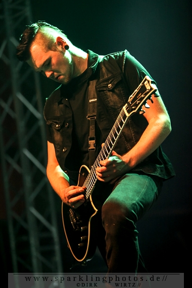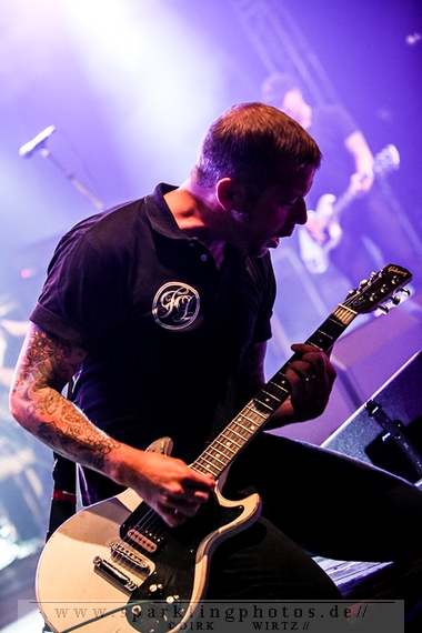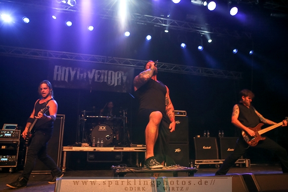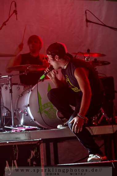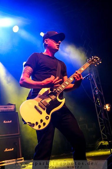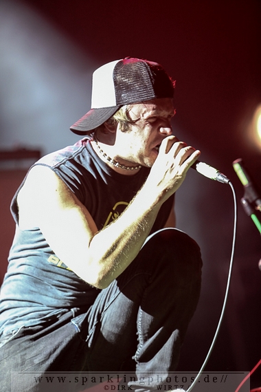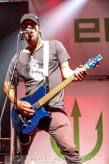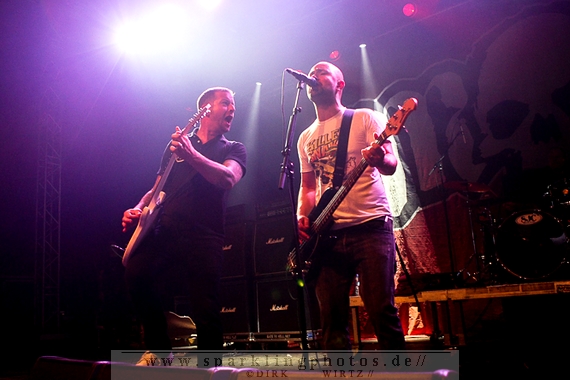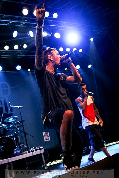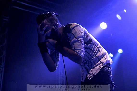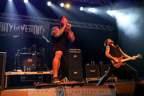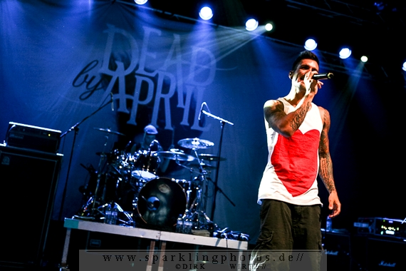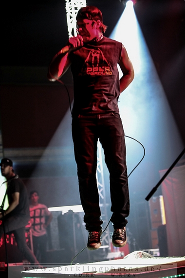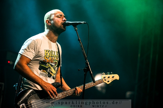 Nach diesem wahrlich kurzweiligen Auftritt erklomm mit Any Given Day [GALLERY] eine lokale Band aus Gelsenkirchen die Bühne. Any Given Day, deren Bekanntheitsgrad sich mit der Coverversion von Rihannas Diamonds schlagartig nach oben katapultierte, legten einen soliden Auftritt auf die Bühne. Hier konnte man schon merken, dass es im Publikum zweierlei Lager gab. Überwiegend Ältere, welche dem Punk’n’Roll zugewandt waren und die eher jugendlichen Fans der härteren Gangart aus der Hardcore-Szene. Letztere wurden auch von Dead By April [GALLERY] bedient. Bei den Jungs war eigentlich zu Beginn des Tages gar nicht klar, ob sie überhaupt auftreten konnten. Wurde doch Sänger Zandro Santiago laut Facebookpage der Band noch ein paar Tage zuvor am Bauch operiert was zur Folge hatte, dass die Band nur ca. 6 Songs spielte. Dies machten die Jungs mit den zwei Sängern aber sehr souverän. Natürlich durfte hier das Killing Joke-Cover Love like blood nicht fehlen.