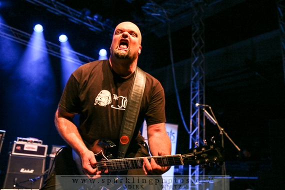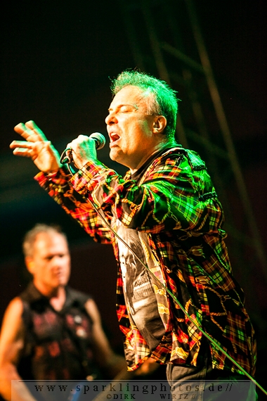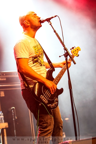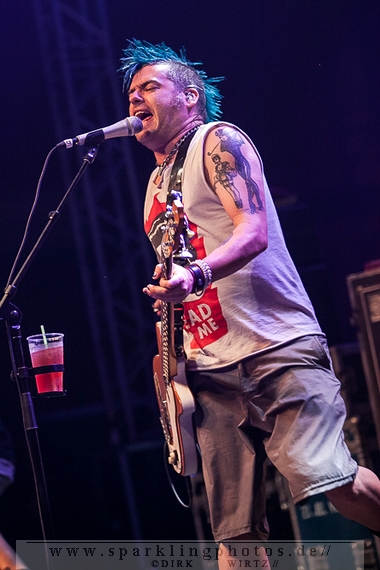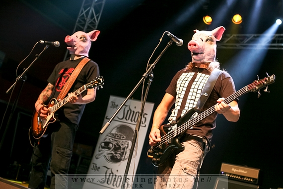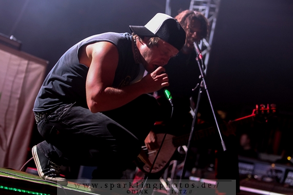 Nach ca. 12 Jahren Abstinenz stiegen als Opening Act die Jungs um Frontmann Sir Hannes mit The Idiots [GALLERY] auf die Bühne. Charismatisch wie eh und je, mit einer großen Portion Elan und prolligem Punk-Hardcore heizten sie dem Publikum ein. Trotz des ja noch recht jungen Tages waren viele Zuschauer wohl auch wegen der Idiots angetreten, geizten weder mit Applaus noch mit dem Verzehr von Bier, welches, als Anmerkung am Rande, auf dem Festival reißenden Absatz fand. Das ließ sich dann auch jene junge Dame nicht entgehen, die im letzten Drittel des Auftritts der Idiots plötzlich und obenrum entblößt, über die Bühne lief und sich den kalten Gerstensaft über den Oberkörper schüttete.
