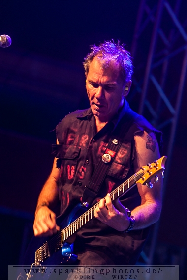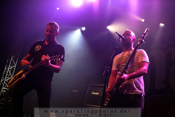 In nahezu gleicher Tradition ging es mit den Alt-Punks von Betontod [GALLERY] weiter, die ebenfalls keine Kompromisse machten. Mit einer Lichtshow vom Feinsten, wurde für die Fotografen im Graben geposed und im feinsten Metal-Punk die Bühne gerockt. Die Rheinberger Band, die nun auch schon seit 1990 aktiv ist und mit dem 2012 erschienenen Album Entschuldigung für nichts ebenfalls noch aktuellen Stoff zu bieten hat, gab ordentlich Gas, um dann nach gut 45 Minuten die Bühne frei zu machen