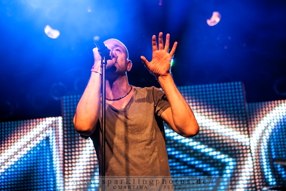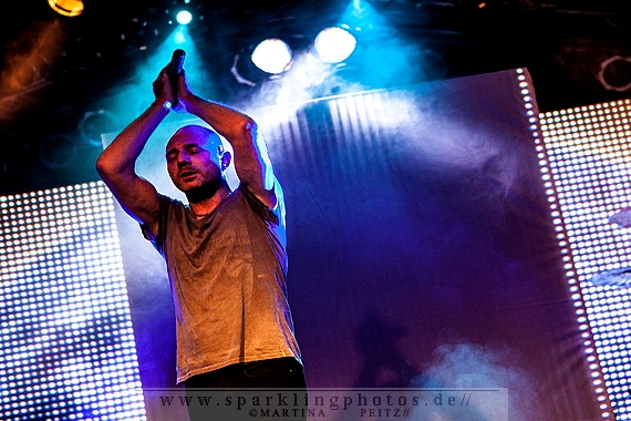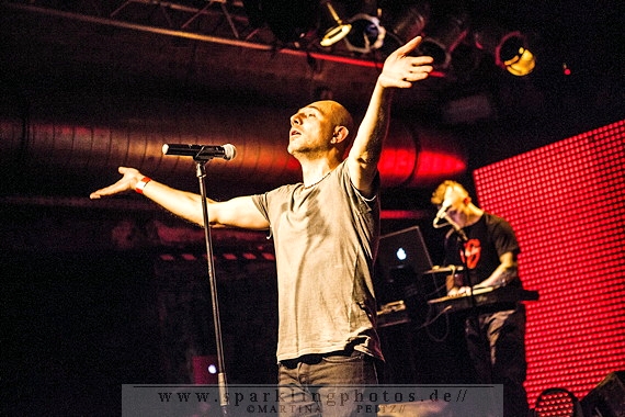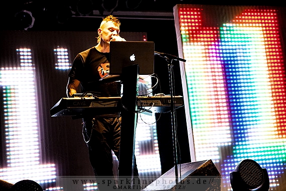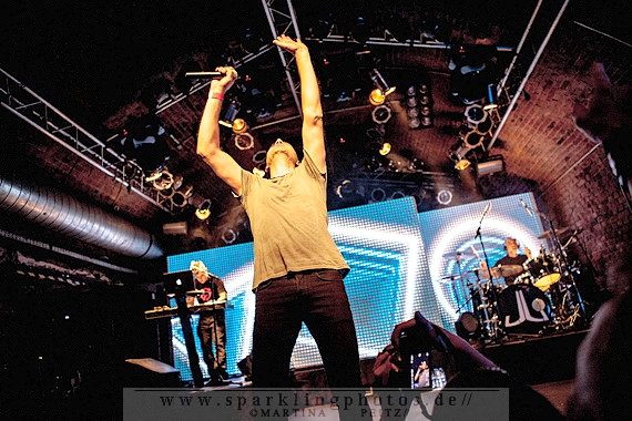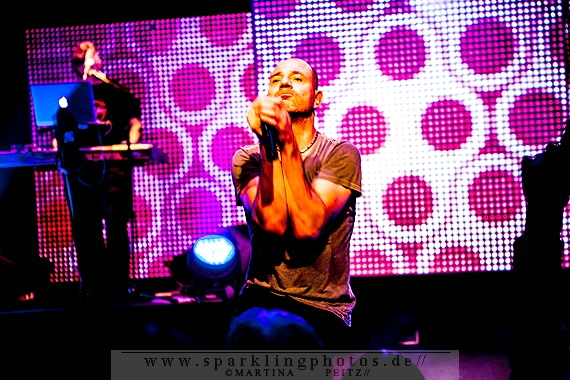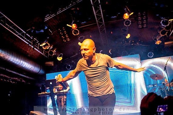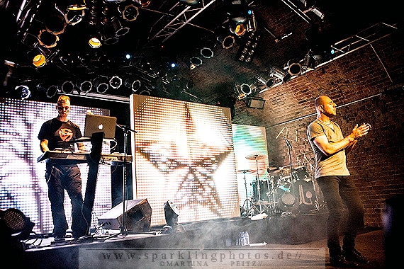 Auf der Bühne fanden wir drei Videoleinwände vor auf die abwechselnd Bilder und Texte projiziert wurden. Davor Thomas Adam und Steffen Keth, verstärkt durch einen Live-Schlagzeuger. Die Tube füllte sich zusehends und die Stimmung war direkt von Anfang an bombig. 25 Jahre und kein bisschen leise, geschweige denn Verlust des Charismas. Steffen fegte über die Bühne. Es wurde mitgesungen, geklatscht und getanzt. Und spätestens bei Klassikern wie Blue Moon, Strange Affektion und Try to forget machte auch der letzte Stillsteher mit und ließ sich von der Masse mitziehen. Synthie Pop vom Feinsten, mal kraftvoll und rhythmisch und mal ruhig und melancholisch. De/Vision haben ein mehr als gelungenes Best Of Konzert mit vielen bekannten Songs und einer Mörderstimmung abgeliefert. Eine Band die immer noch Spaß an der „Arbeit“ hat. Eine gelungene Mischung aus Erinnerungen und Musik.