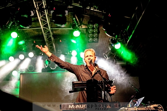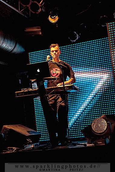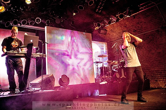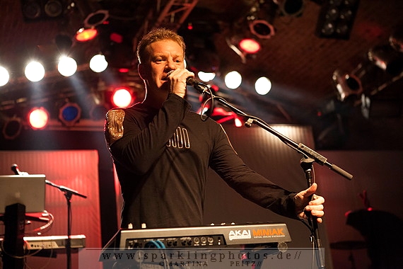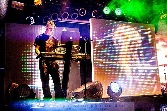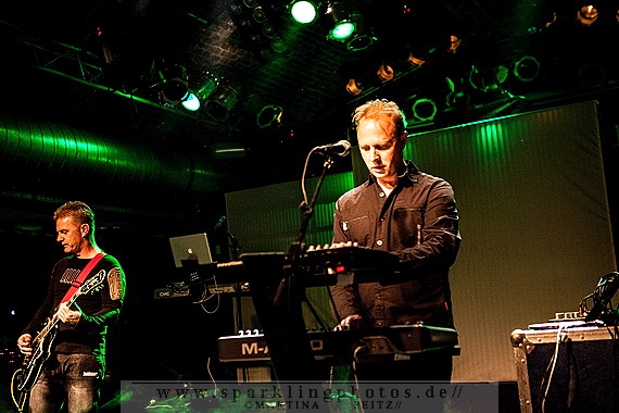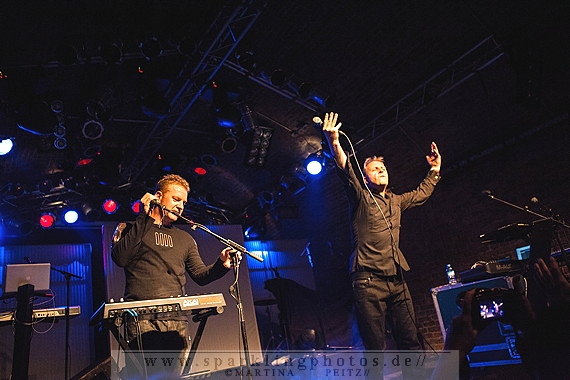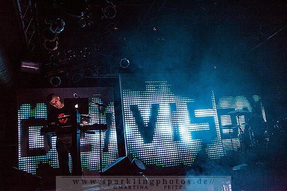 Ihr Musikstil ist eine Mischung aus tanzbarem Synthie Pop, Achtziger Wave und ruhigen Elektroklängen. Wir wurden pünktlich ab 20 Uhr in der Tube mit 10 Songs von Tenek verwöhnt. Mit Titeln wie Belive in something, High above, Another day oder Submission bewiesen sie eine gute Songauswahl und einen repräsentativer Querschnitt um sich ein evtl. sogar erstes Bild von Tenek machen zu können, die mittlerweile auf zwei Alben und acht Singles / EP’s zurück schauen können. In den 45 Minuten zeigten sie uns kraftvoll geladenen Synthie mit Achtziger Einflüssen, hörbar, tanzbar und Musik die einfach Spaß macht! Auch wenn es zu dieser Zeit noch recht übersichtlich in der „Röhre“ war, war die Stimmung im Publikum gut. Das Duo hatte mindestens genau so viel Spaß und konnte das Publikum ohne weiteres zum Mitmachen animieren. Tenek haben mich voll und ganz überzeugt und ich kann sie nur wärmstens empfehlen. Um Punkt 21 folgte der Hauptact, der in Sachen Electro/ Synthie-Pop seit 25 Jahren unterwegs und nach wie vor eine Institution weltweit ist. De/Vision – ursprünglich im Juli 1988 in Bensheim von Thomas Adam, Stefan Blender, Steffen Keth und Markus Ganßert gegründet. 1991 verließ Stefan Blender die Band, 2000 folgte ihm dann auch Markus Ganßert. Thomas Adam und Steffen Keth beschlossen von da an als Duo allein weiterzumachen. Eine gute Entscheidung wie sich zeigte. Seit Jahren kreieren sie Ohrwürmer und Tanzflächenfüller am laufenden Band.