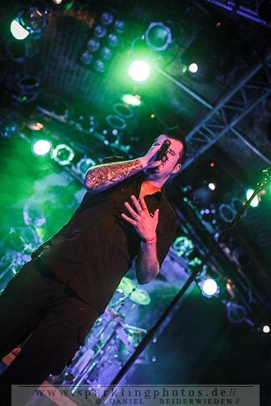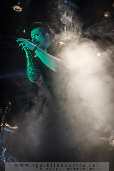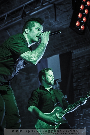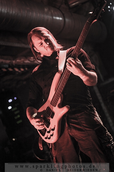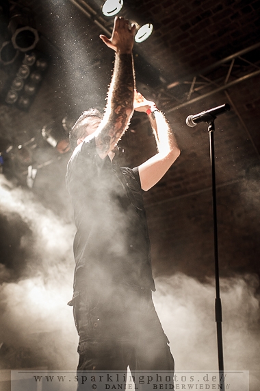 Um 21 Uhr ist es dann Zeit für Alexander Kaschte und seine Band. Doch schon beim ersten Song Betet für mich gibt es, wie schon auf dem Blackfield, Probleme mit dem Metronom fürs Schlagzeug. Kurzerhand starten Samsas Traum die Show nach wenigen Minuten Unterbrechung nochmal von vorne. Diesmal läuft alles problemlos und als zweites Stück folgt Für immer, bei dem das Publikum sofort mit einsteigt – es wird geklatscht, gesungen und getanzt. Wie üblich zeigt sich Alex zwischen den einzelnen Stücken sehr mitteilsam und unterhält die Menge mit seinem besonderen Charme. Und natürlich hat er neben Wodka für die ersten Reihen auch wieder einige Shirts dabei, die er ins Publikum wirft. Dass er sich zuvor damit den Schweiß abwischt oder auch hinein schnäuzt macht dem hartgesottenen Fan nichts aus, die Shirts sind beim Publikum heiß begehrt. Weiter geht es in der von der Reihenfolge her leicht abgewandelten Setlist mit Stücken aus fast jeder Schaffensphase der Käfertruppe. Besonders zu den wohlbekannten Songs wie Ein Name im Kristall, Stromausfall im Herzspital und Endstation Eden geht es in der der Tube dabei so richtig ab. Wall of death, Circle Pit um das Mischpult – Samsas Traum verlangen ihren Fans so Einiges ab. Während die Temperatur in der schmalen Röhre sich immer weiter steigert