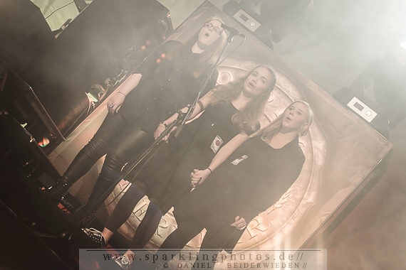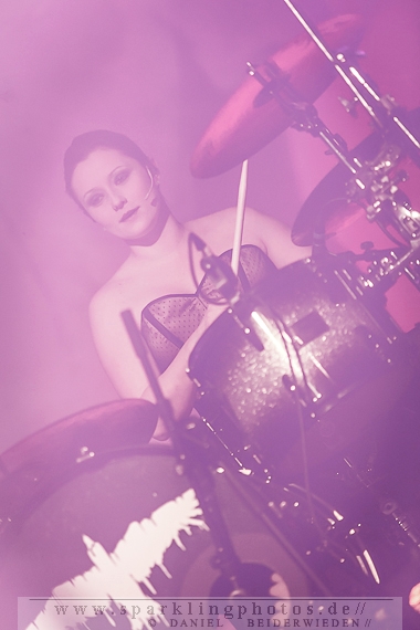 Spätestens bei Symphony of Pain bekamen aber auch die anderen Bandmitglieder die Aufmerksamkeit des Publikums, darunter insbesondere Schlagzeugerin Katha Mia dank der plötzlich zu hörenden Frauenstimme. Ihr Schlagzeug war gut sichtbar auf einem Podest im hinteren Teil der Bühne postiert und kam insbesondere durch die immer wiederkehrenden Pyroeffekte im weiteren Verlauf des Konzerts in den Fokus. Doch auch Sänger Martin hatte weiterhin die volle Aufmerksamkeit des Publikums und forderte aktiv dessen Mitarbeit ein. Vor allem das Nutzen des Bühnenstegs, um Kontakt zum Publikum zu haben, wurde mit frenetischem Klatschen belohnt.