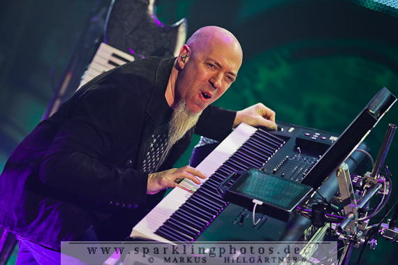 Die Perfektion und Spielfreude auf der Bühne war kaum zu bremsen, und so ging dieser Song schnell zu ende – und dann kam der große Moment. Würden sich Dream Theater tatsächlich dazu durchringen können das geniale Space-Dye Vest, einst von Kevin Moore geschrieben, live zu spielen? Nun, so viel sei verraten: Allein für dieses eine Lied musste man unbedingt auf dieser Tour dabei sein. Sinnvoll zentral im Programm gehalten war es doch das Highlight des ganzen Konzertes, kaum fing Rudess die ersten Töne an schon brach eine Stimmung in der Masse aus, welche man selten, selbst bei so herausragenden Konzerten, vorfinden konnte. 20 Jahre ließen sich Dream Theater Zeit diesen Song live zu spielen, obschon er stets einer der Favoriten der Zuschauer war. 20 Jahre warten haben sich gelohnt – sie spielten Space-Dye Vest und feierten mit dem Publikum zusammen damit den absoluten Höhepunkt des Konzertes. Unsteigerbar war er als letztes Lied auf Awake enthalten – und somit auch das letzte Lied was sie von Awake spielten. Kam nun die Hoffnung auf, dass sie direkt zur Metropolis-Scheibe übergehen würden, so hat Dream Theater das Publikum mit Illumination Theory nochmal daran erinnert, dass diese eigentlich eine Tour zum selbstbetitelten Album war. Für einige ein wunderschöner Song, so wirkte gerade live der Song an ein paar Stellen, besonders im Mittelteil The Embracing Circle, etwas zusammenhangslos, dennoch kam er beim Publikum durchweg gut an. Nun aber endlich Metropolis. Zuerst jedoch verschwand das Quintett hinter der Bühne und ließ sich zur Zugabe herausklatschen. Bediente man sich bei Awake noch der hinteren Hälfte des Albums, so fing man hier mit Overture 1928 und einem zur passenden Zahl laufenden Ticker quasi am Anfang des Albums an. Unmittelbar auf das instrumentale Intro, welches nochmal durch die Hauptthemen des Albums musikalisch führte, knüpfte man mit Strange Déjà Vu und dem Aufruf ans Publikum mitzusingen albumtechnisch unmittelbar daran an und zeigte sich sehr spielfreudig. Und nun kam ein Sprung. Mit The Dance of Eternity lieferten Dream Theater ihr bekanntes Spektakel aus waghalsigen Taktwechseln, atemberaubenden Hochgeschwindigkeitsmelodieläufen und in sich stimmigen Songwritings auf allerhöchstem Niveau noch einmal ab bevor es mit Finally Free als letztes Lied des Auftritts noch einmal quasi besinnlich wurde. Womit man 1999 Alben beenden kann, kann man 2014 immer noch gut Konzerte beenden.