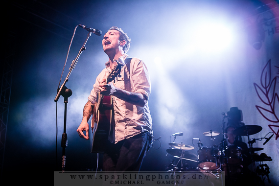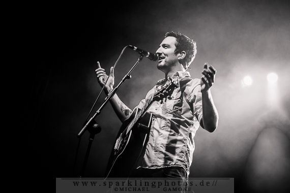 Eine solche Menge an Konzerten kann vielerlei bedeuten, erst einmal natürlich viel Erfolg bei dem, was man macht. Andererseits eventuell aber auch eine gewisse Routine, die schnell zu Langweile führen kann, wenn nicht…. Ja, wenn nicht eine Riesenportion Spaß dabei ist. Und dieser Spaß, der ist Frank Turner und den Sleeping Souls von der ersten Minute des Konzertes an anzusehen. Kurz nach 21.30 Uhr an einem verregneten Donnerstagabend war es soweit und die Band stürmte die Bühne in der Oberhausener Turbinenhalle. Frank Turner konnte aus gesundheitlichen Gründen eine ganze Weile keine Gitarre mehr spielen und man merkte ihm an, wie sehr er es genoss, wieder mit seinem Instrument über die Bühne zu stürmen.