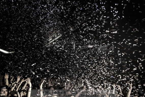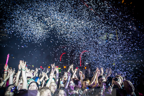 Man mag von den eigenwilligen Ansagen von Frontsau Jennifer halten was man will, sie hat dadurch einen ganz besonderen Draht zu ihren Fans und zeigt ihnen damit, dass sie ruhig mal ihre Sorgen beiseite legen können und einfach ein bisschen ausgeflippt abspacken können. Ein Konzept was durchaus aufgeht und wovon beide Seiten profitieren. Ob es nun der „Gesangs-Battle“ zweier Fans auf der Bühne JENNIFER ROSTOCK - Oberhausen, Turbinenhalle (07.02.2014) & Köln, Palladium (11.02.2014)ist oder auch das Surfen von Jennifer Weist auf den Händen ihrer Fans oder auch das Schwenken der Regenbogen-Fahne, es wird einfach alles gnadenlos abgefeiert.